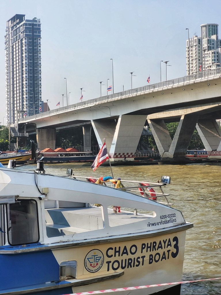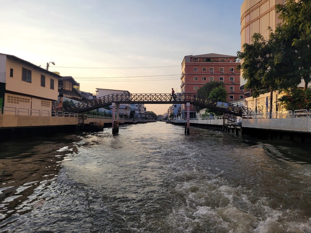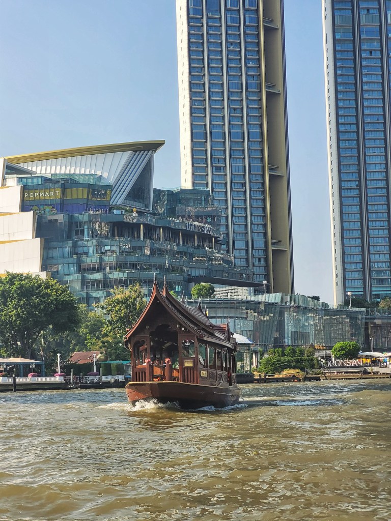 Um zu unserem ersten Ziel zu kommen, durften wir mit den Klong Express Boat fahren. Das übliche Transportmittel in den Kanälen/Klongs Bangkoks…