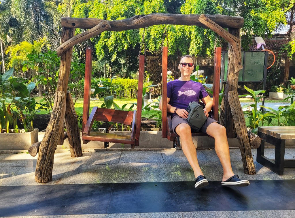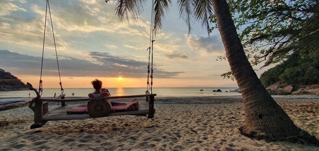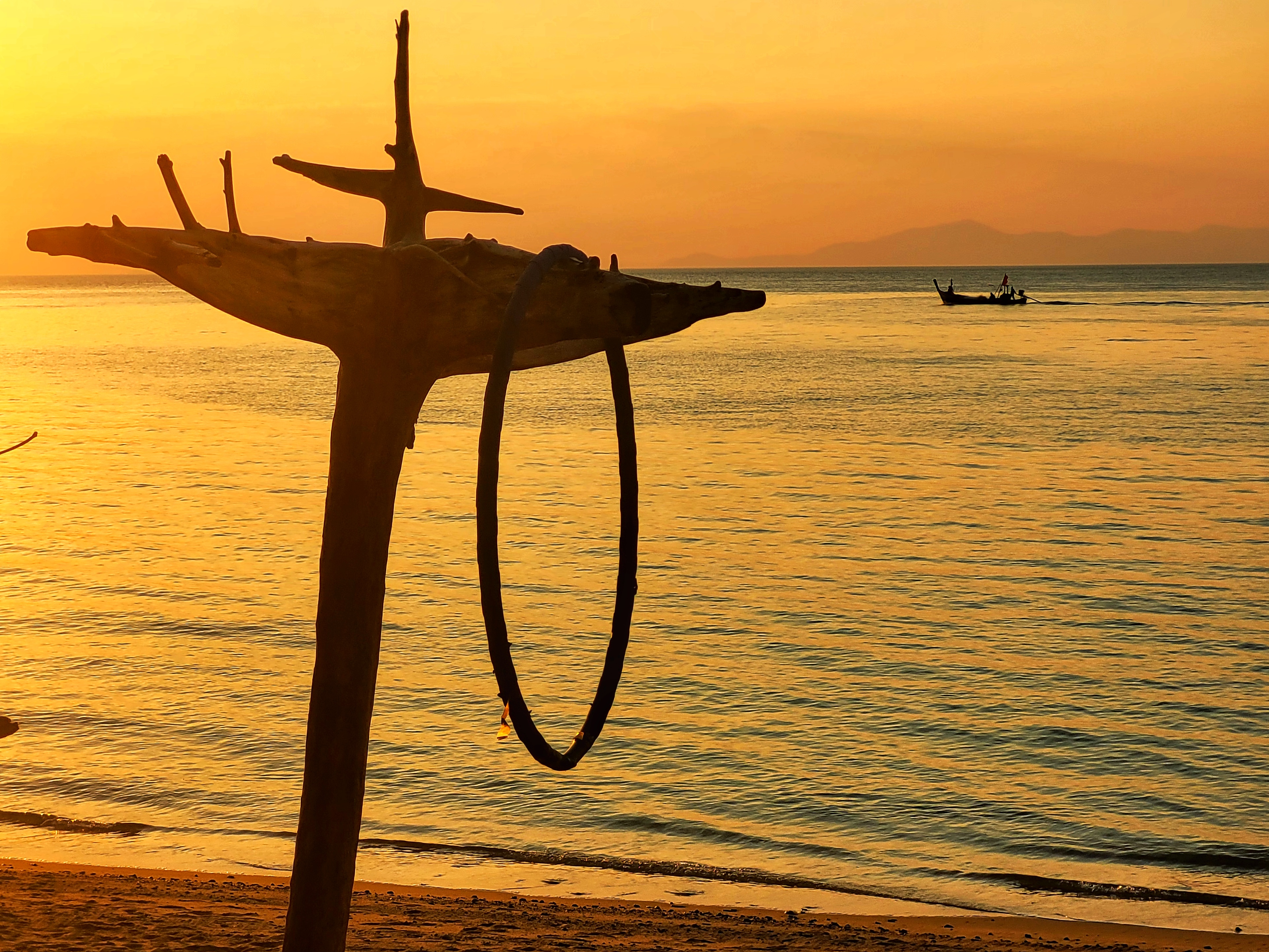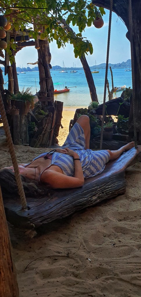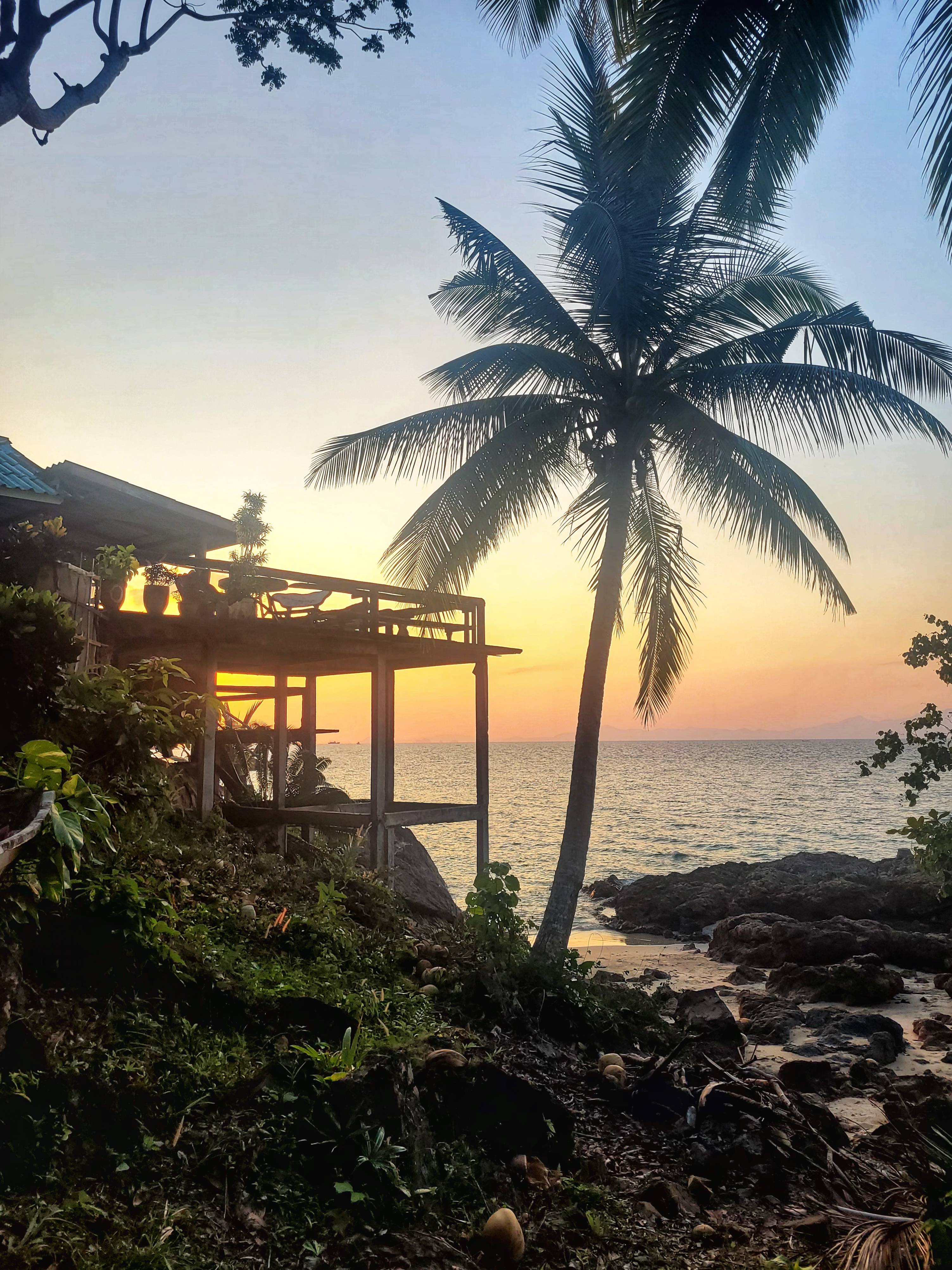 Katrin erzählte uns die Geschichten über die ganzen Farangs (übersetzt Kartoffel, so nennen die Thais uns Europäer), die hier ihre Zeit verbringen, Geschichten von den ganzen Menschen, die dieses einfache Leben hier lieben. „Don´ t move!“ war eines der ersten Dinge die ich hier gelernt habe und sofort sehr gut in der Umsetzung wurde. Ich habe einen Menschen kennengelernt, der es liebt zu sitzen 😄, ihm jede Ausrede dazu lieb ist, sich nicht bewegen zu müssen. Er hat erst im 6. Jahr auf der Insel die Kneipe am Ende von seiner Straße kennengelernt.
