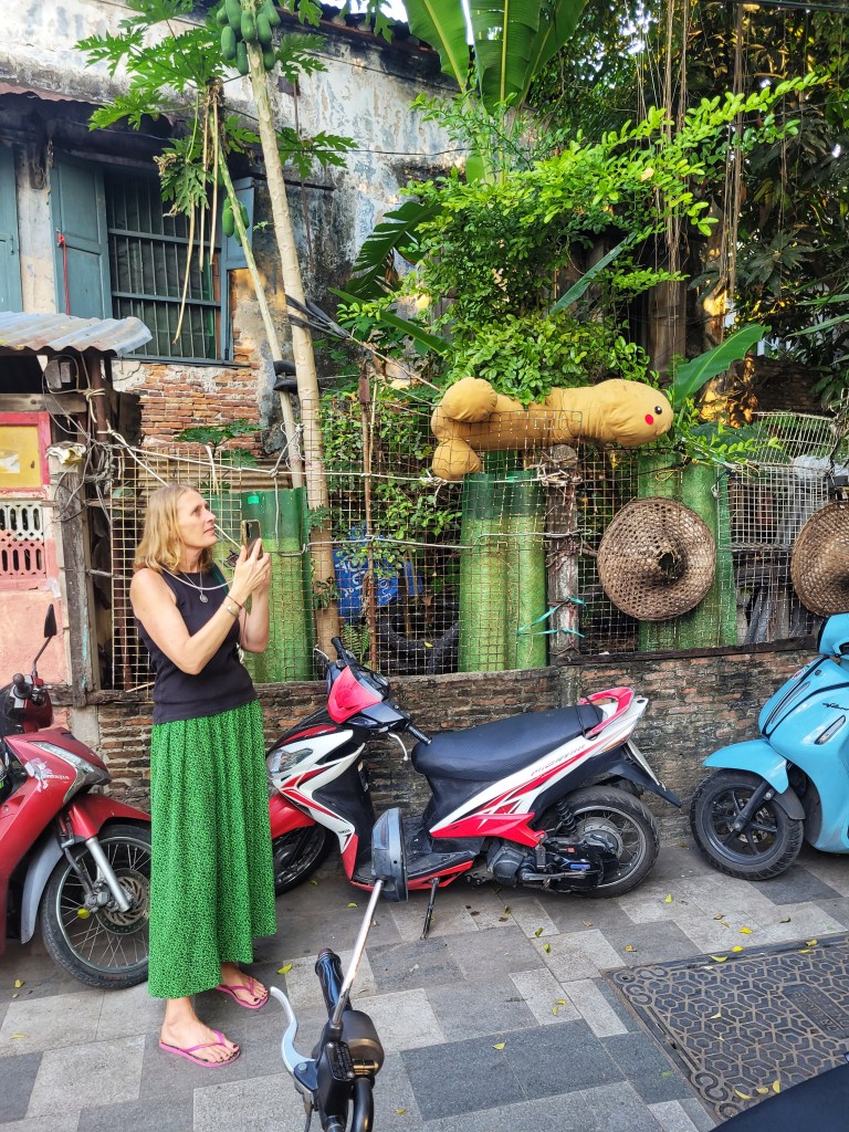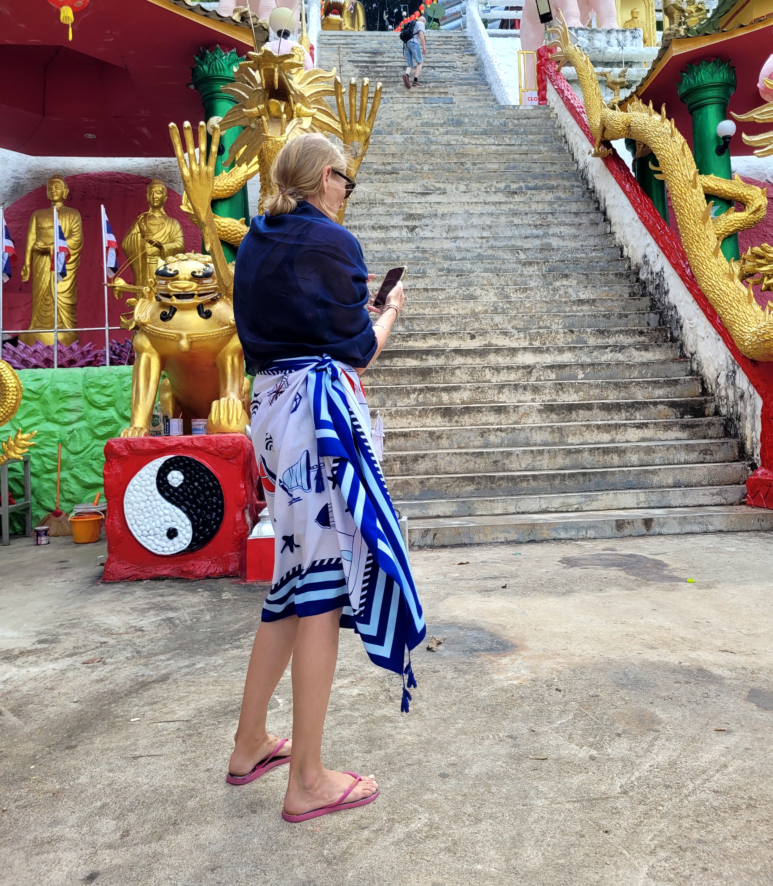 Katrins Hose war zu kurz, und schon kam eine Dame angelaufen und hat ihr einen Sarong umgebunden…