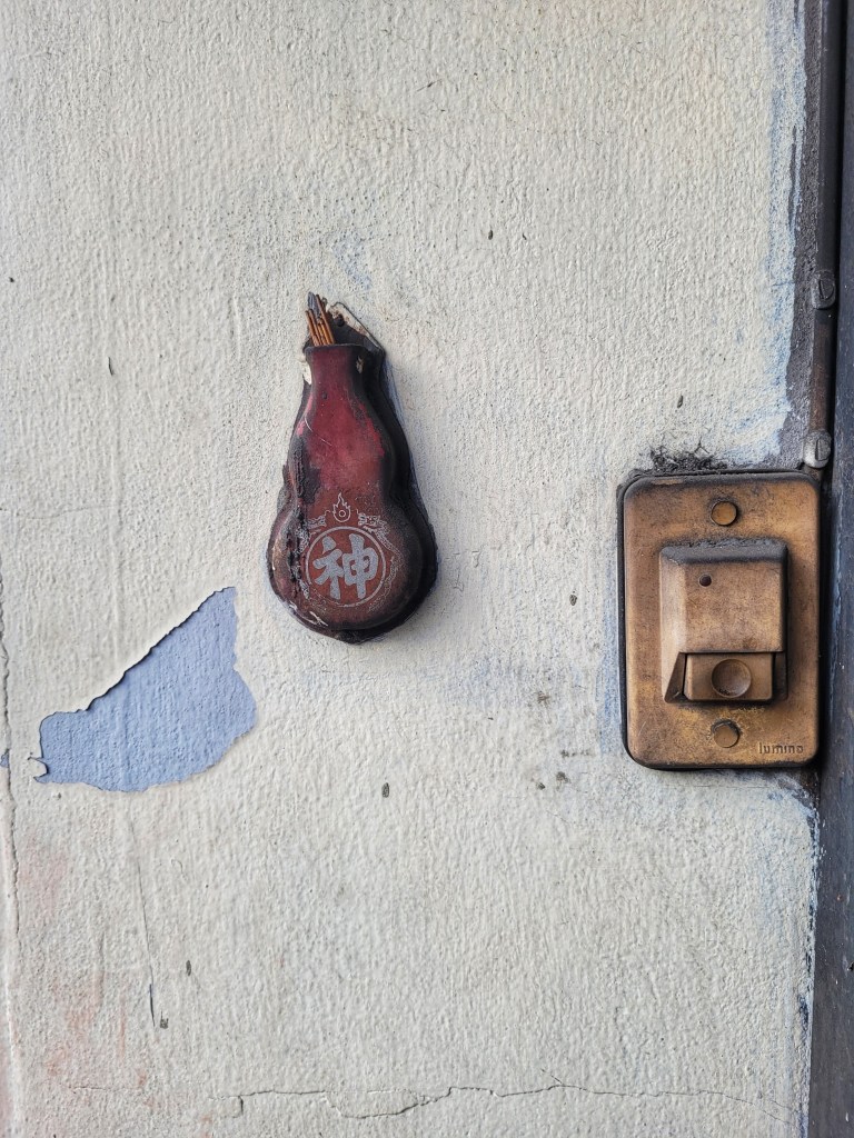 Neben der Haustürglocke die Halterung für Räucherstäbchen…