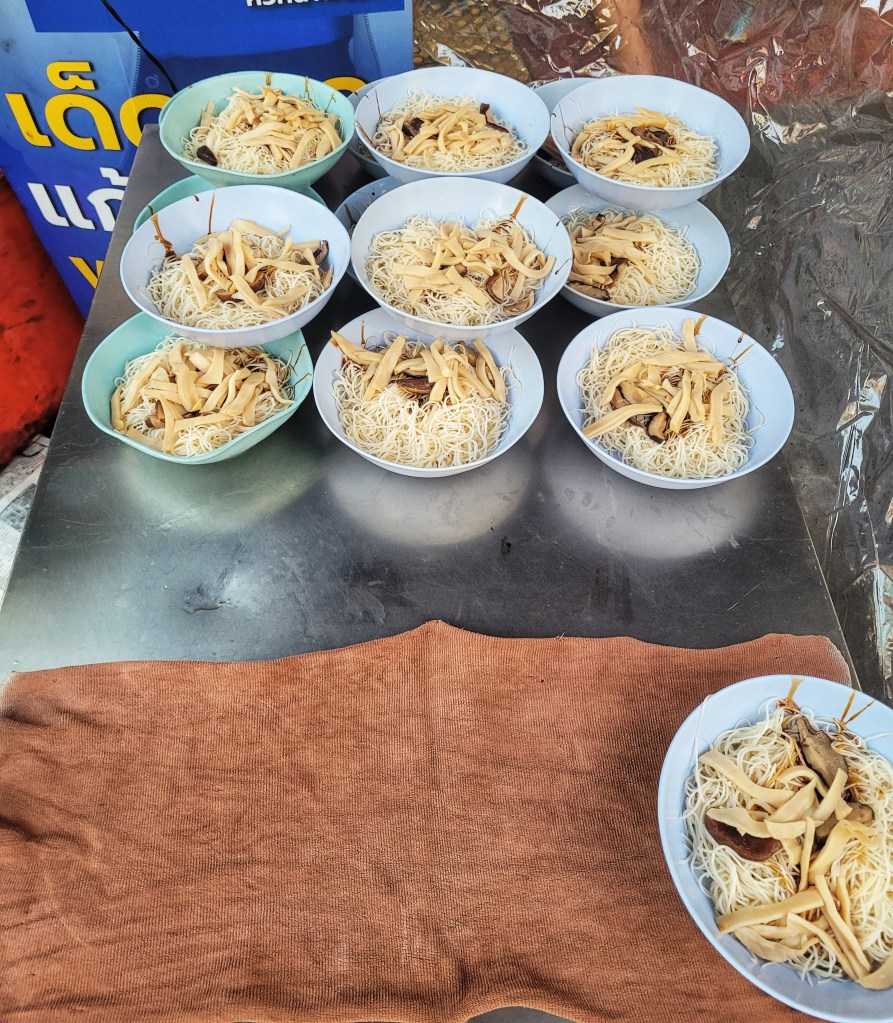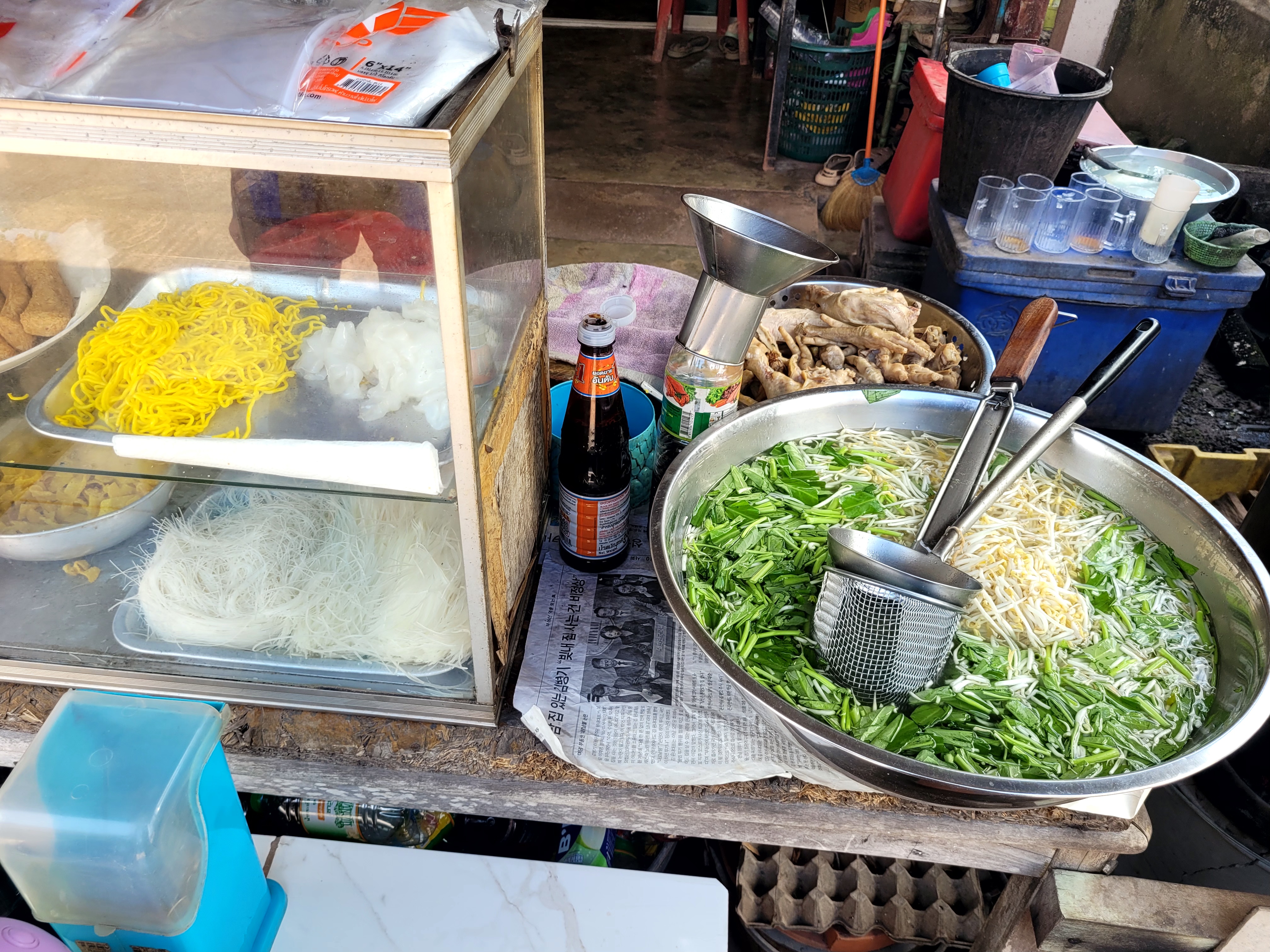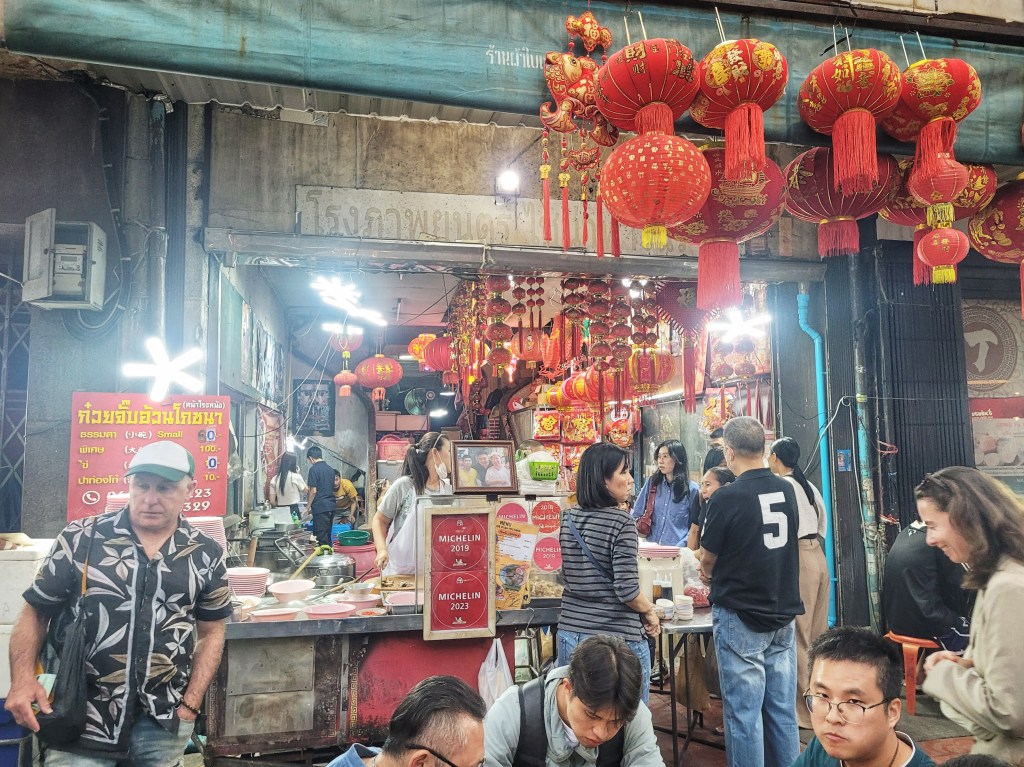 Das ist Nai Ek Roll Noodle (Guay Jub Nai Ek) in Bangkoks Chinatown (Yaowarat). Michelin Guide 2019 und 2023 Streetfood. Spezialität: