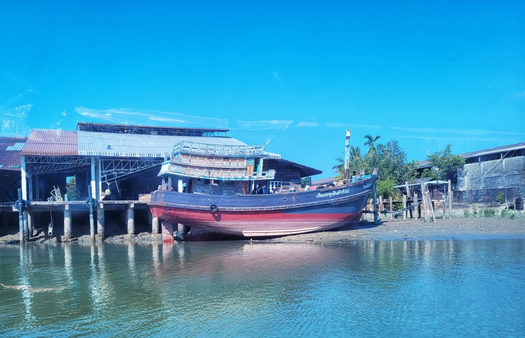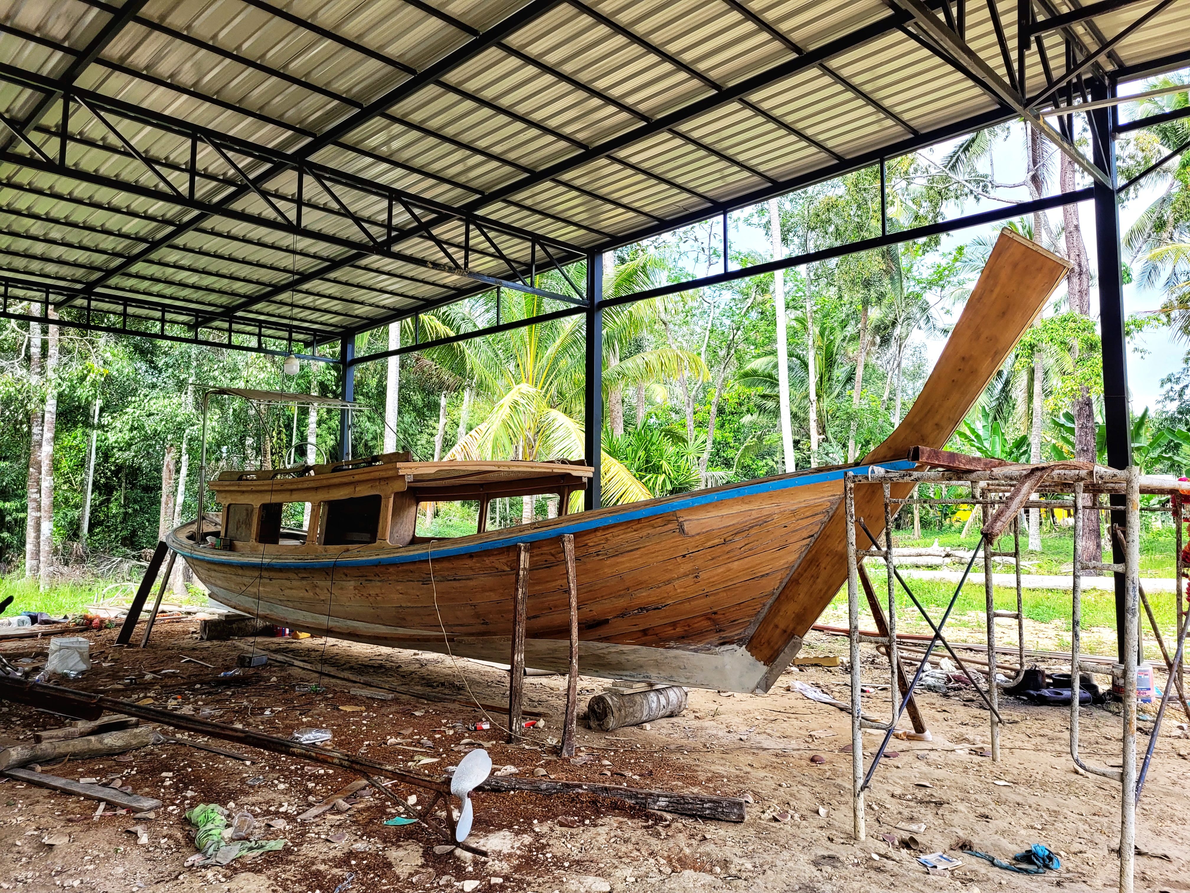 Weiter auf der Straße, hielten wir bei einem Schiffsbauer…