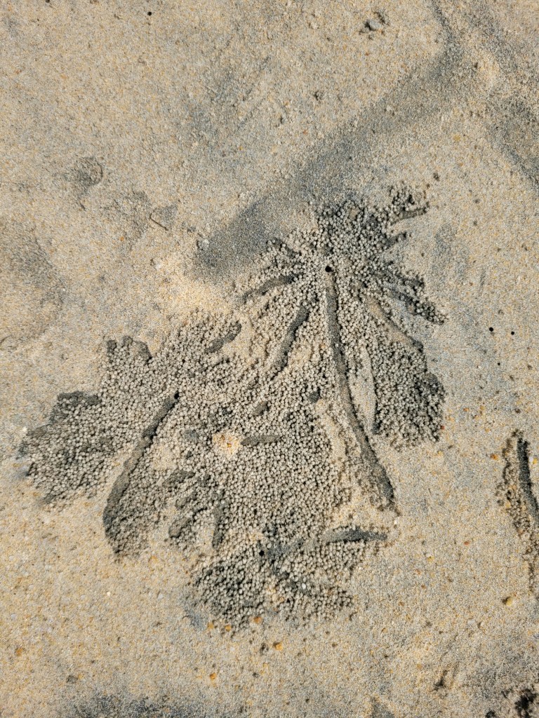 …und im Wasser piekste es unangenehm. Das sind die Larven von Mangrovenquallen. Man sieht sie nicht und es ist auch nicht gefährlich. Es piekst auf der Haut und beim Schwimmen fühlt es sich an als ob man durch klumpiges Wasser schwimmt.