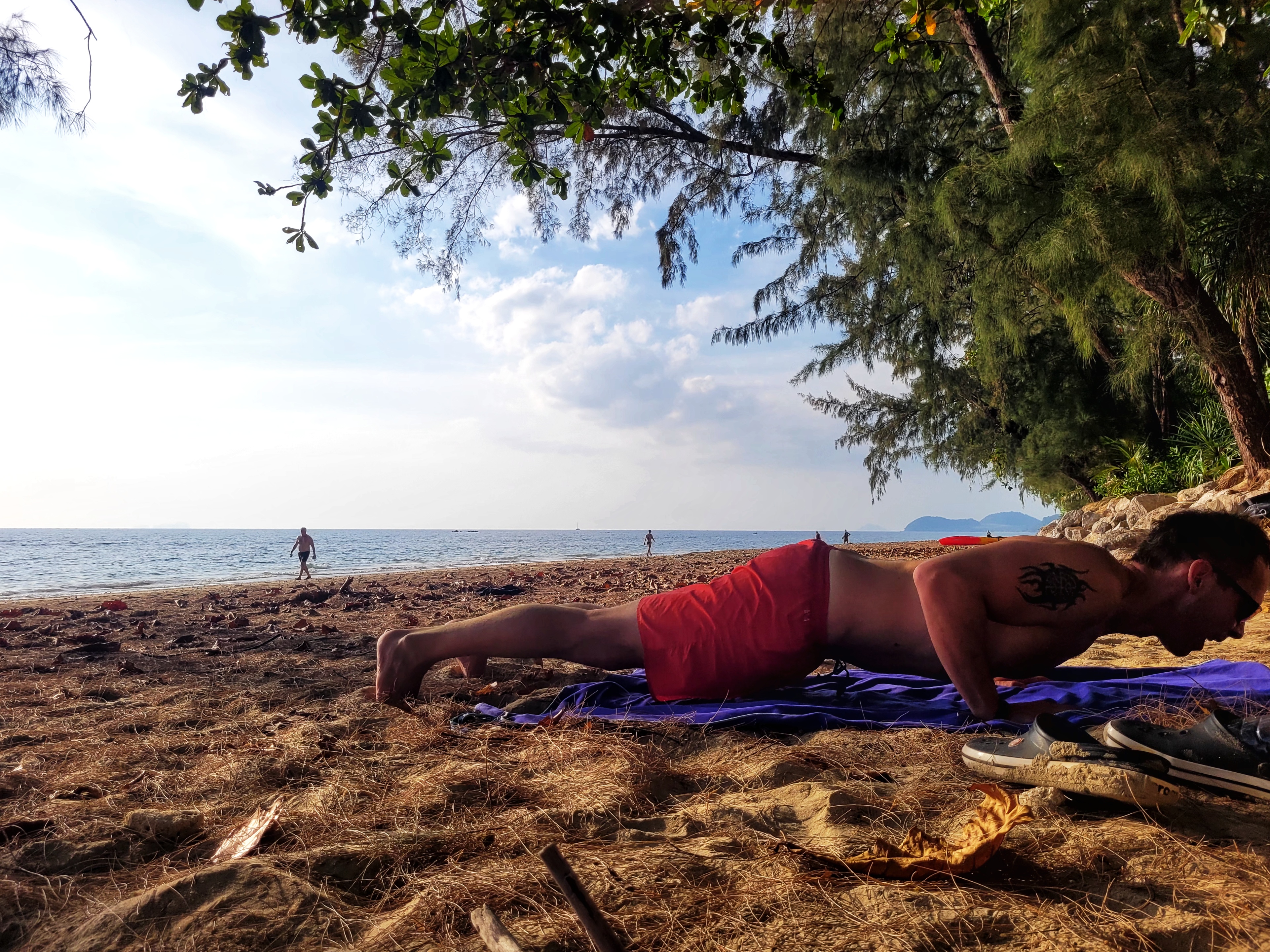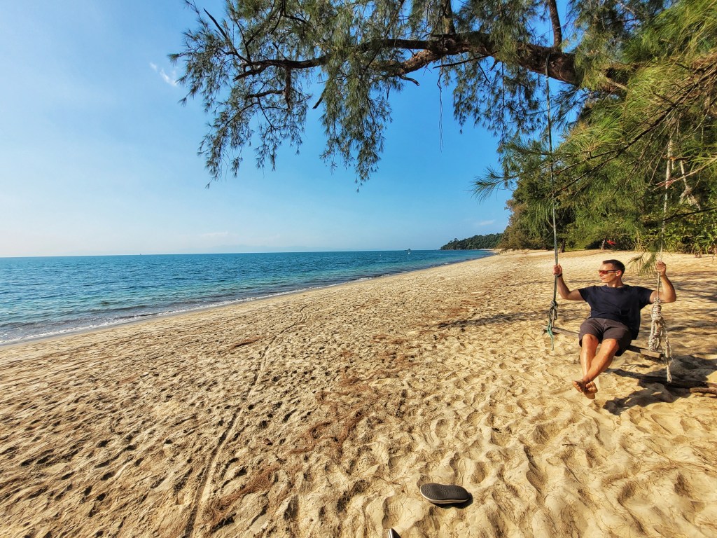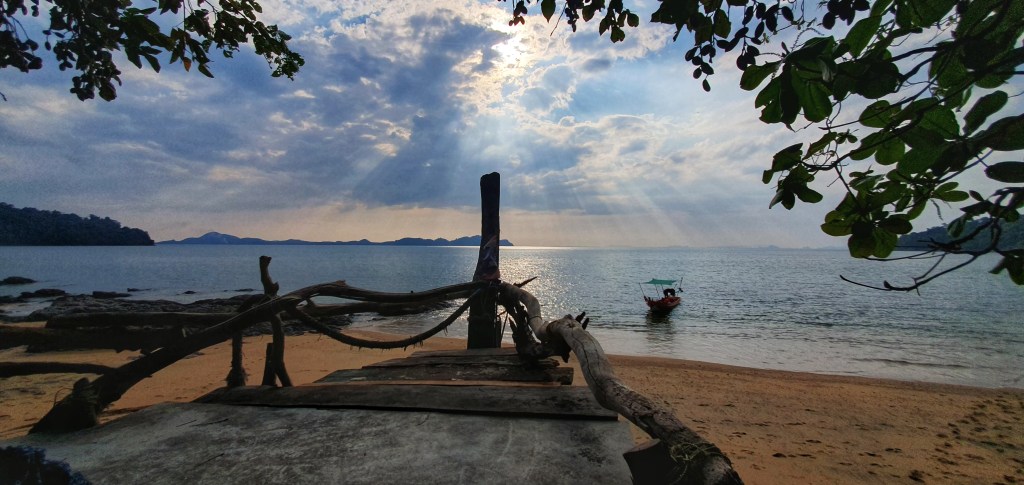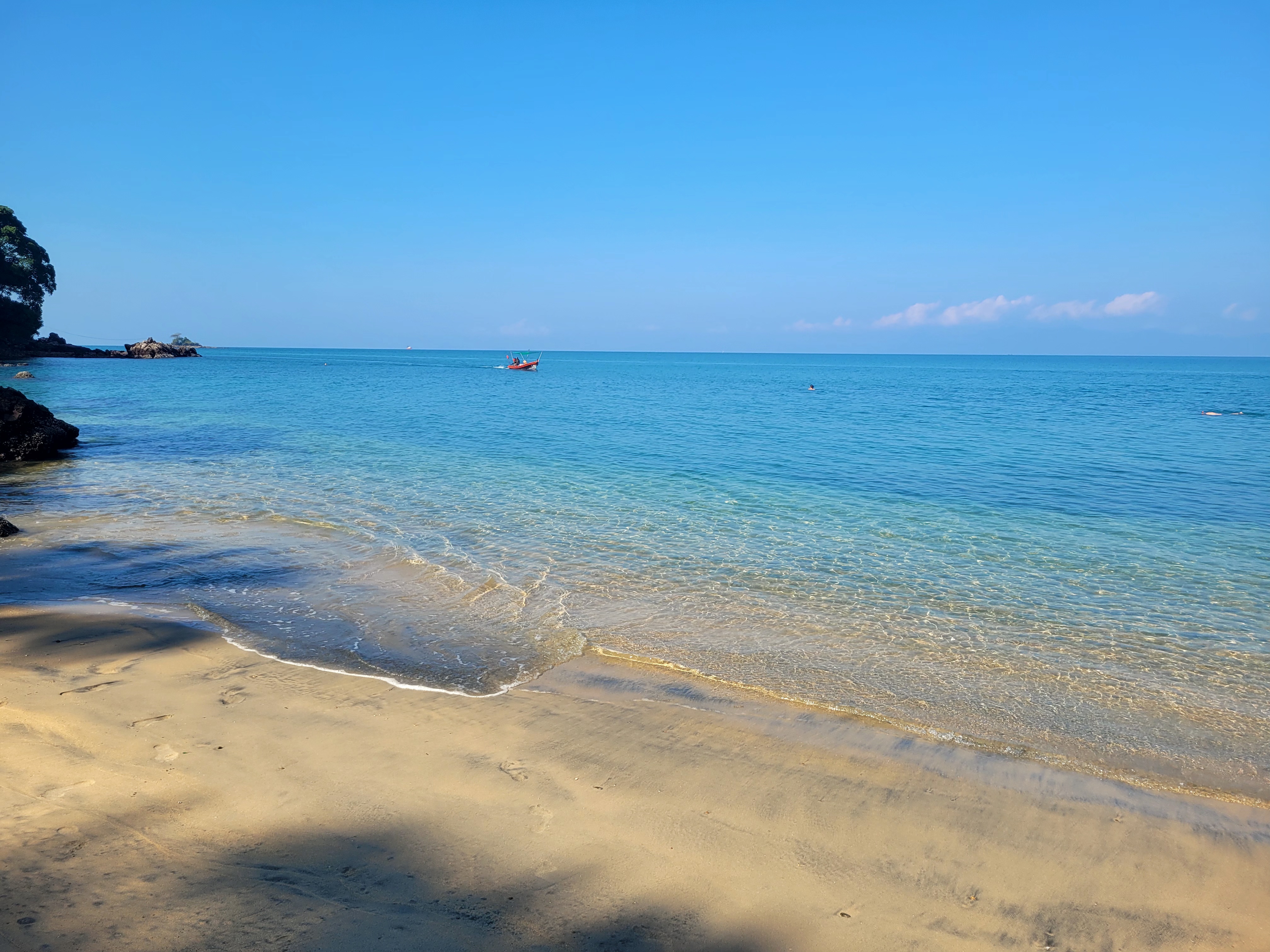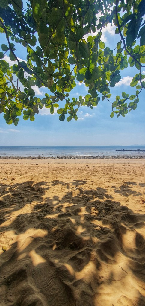 Und von der Unterkunft aus waren es nur 50 m bis an den Strand Klong Nin. Und da haben wir uns dann auch erstmal ausgebreitet. Es gab kaum Schatten…