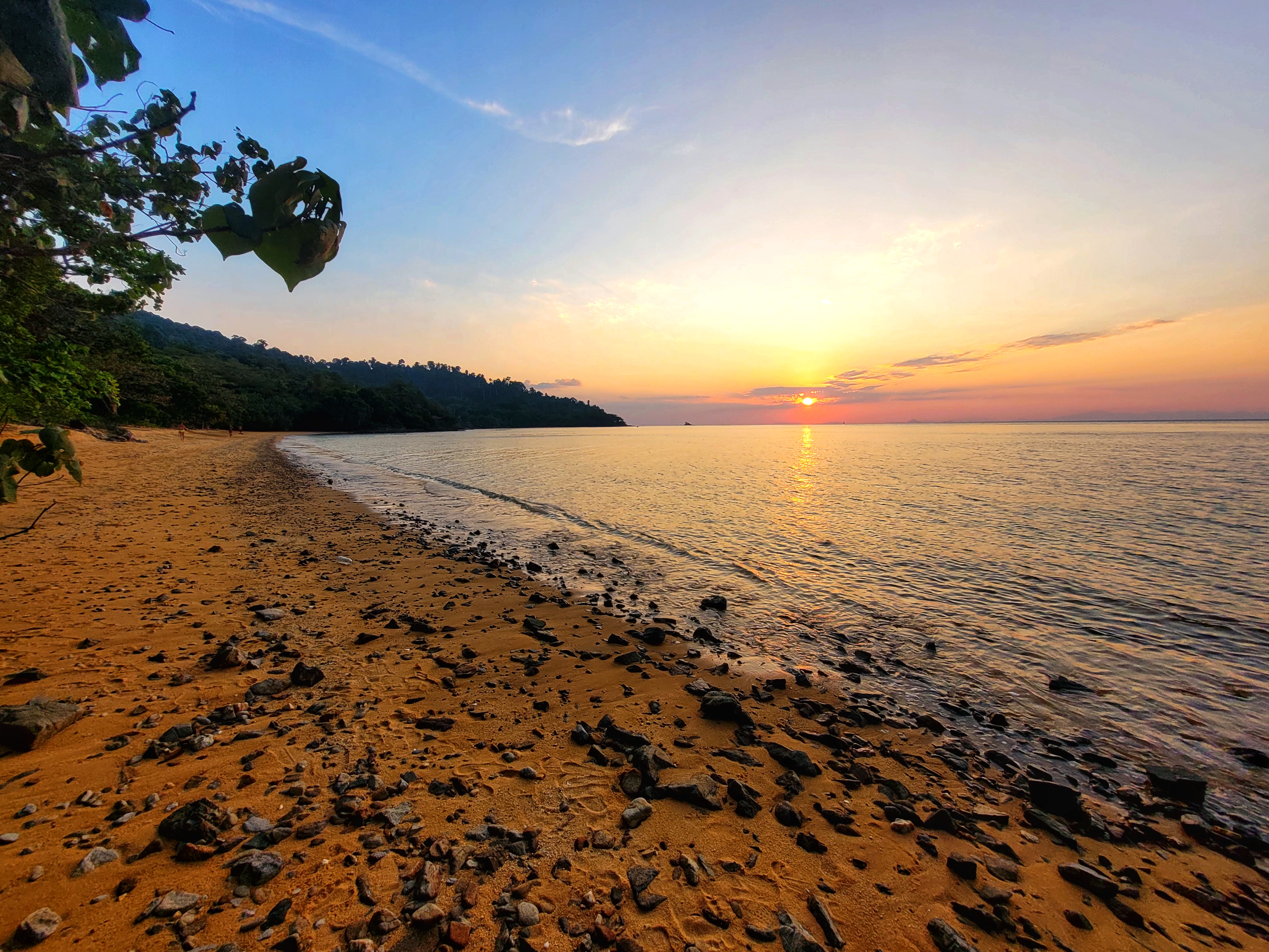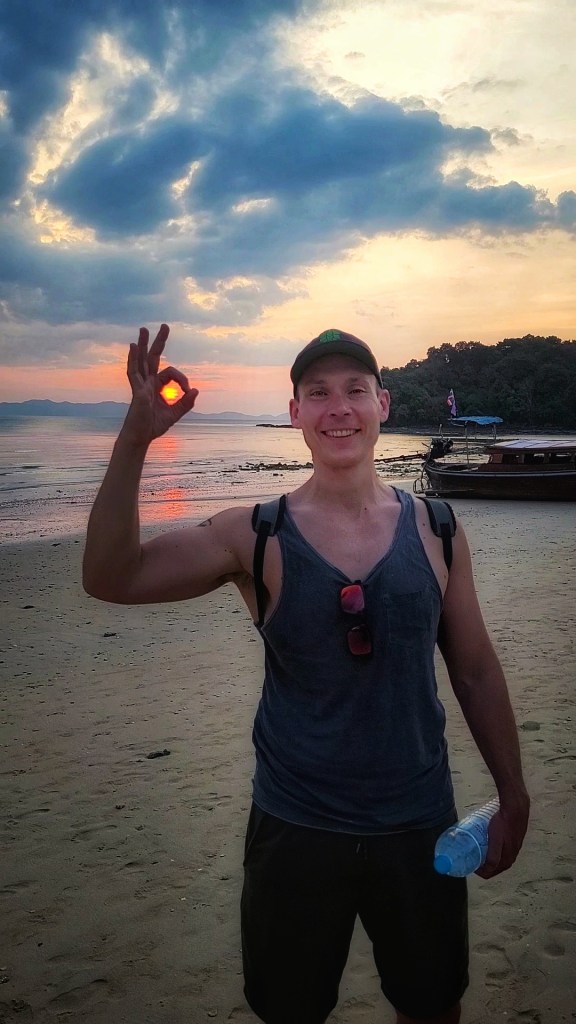 Wir fuhren dann weiter zum Klong Muang Beach, der nicht ganz so überlaufen ist. Marius holte sich erst noch Papaya Salat mit Meeresfrüchten und dann ging es zum Baden. Bis zum Sonnenuntergang…