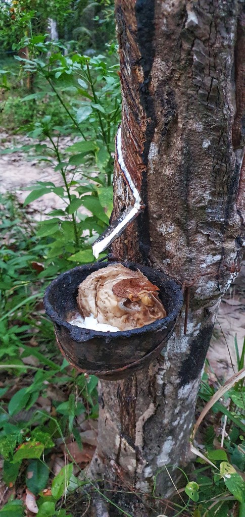 Es begrüßte uns der ekelhafte Gestank von frisch geerntetem Kautschuk, der da an der prallen Sonne lag…