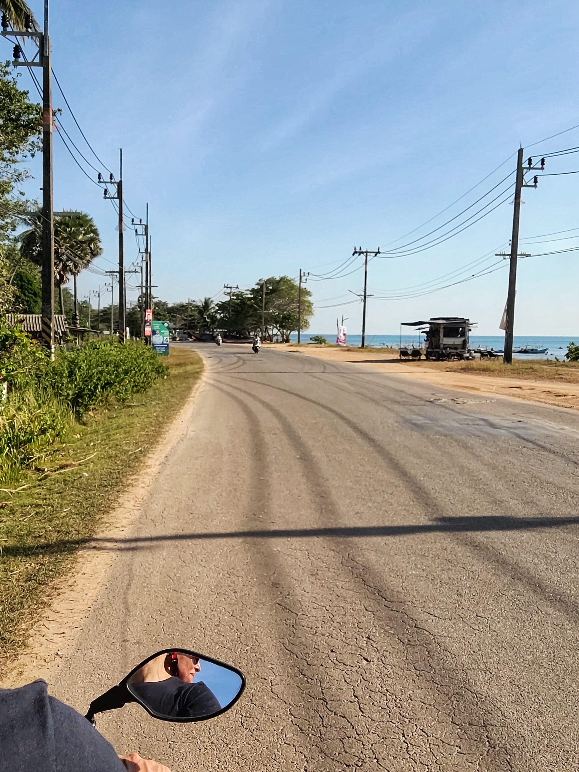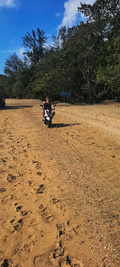 …und Bungalows. Ich habe beobachtet, wie Einheimische mit ihrem Roller über den Strand fuhren, und dachte, wir könnten so den Heimweg abkürzen. Marius hat sich schließlich breitschlagen lassen, aber wir sind dann doch nicht auf die Straße gekommen, die Google uns angezeigt hat. Aber wieder ein erstes Mal: mit dem Roller über den Strand😅