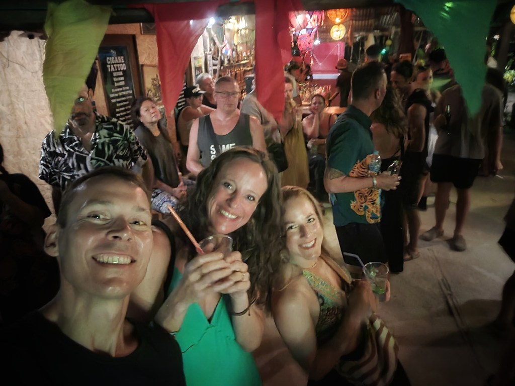 Schon bei Katrin auf der Insel hatten wir von der thailändischen Reggaeband gehört, das eine Lied sofort im Ohr gehabt. Er ist in ganz Asien berühmt und die Thais feiern ihn, weil er der Einzige ist, der es hinbekommt, auf thailändisch gute Reggae Musik zu machen. Und so feierten wir mit ihnen und tanzten den ganzen Abend…