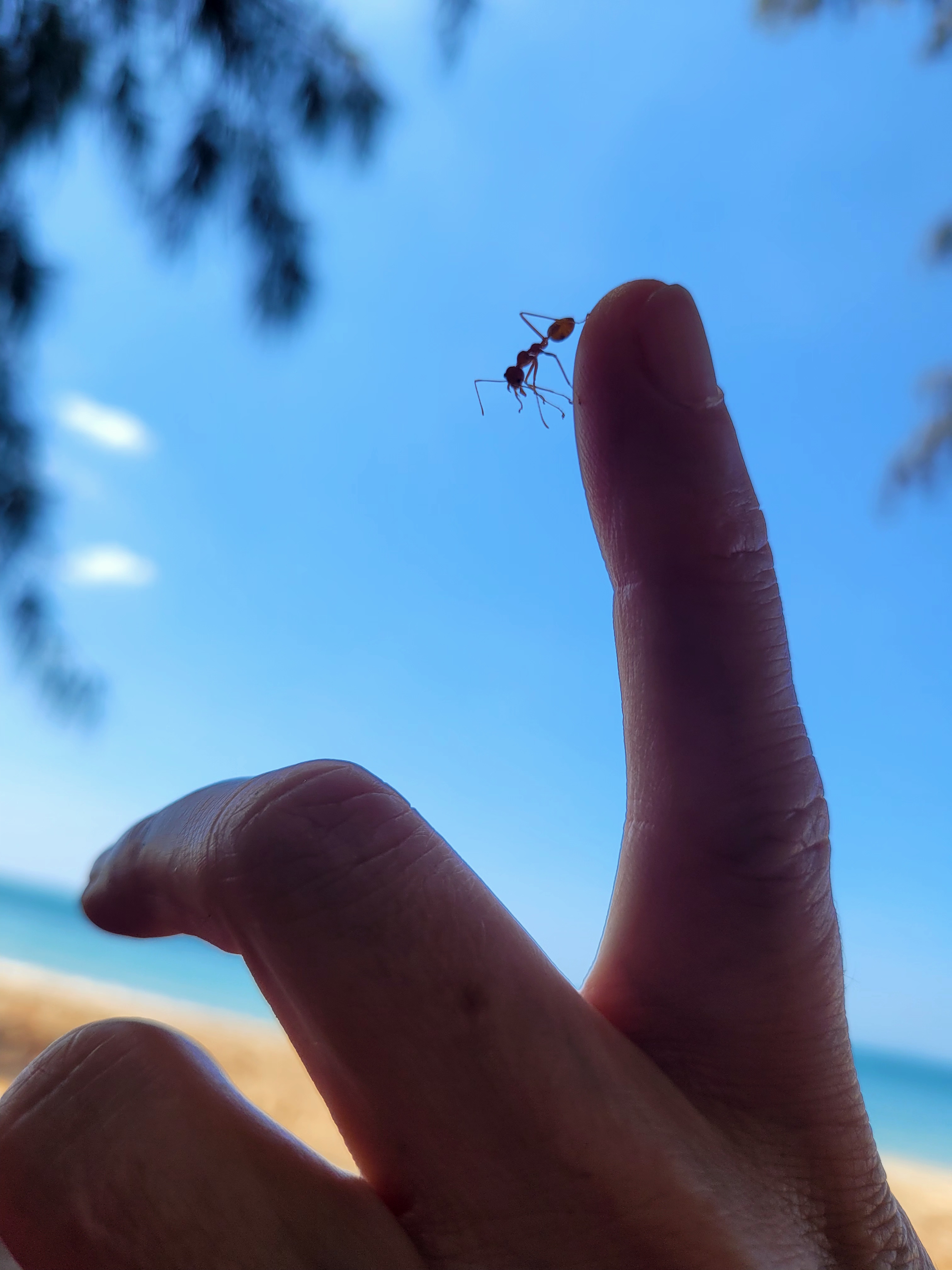 Wir hatten es zu Fuß ca. 5 Minuten an den Strand, der lang und einsam war…