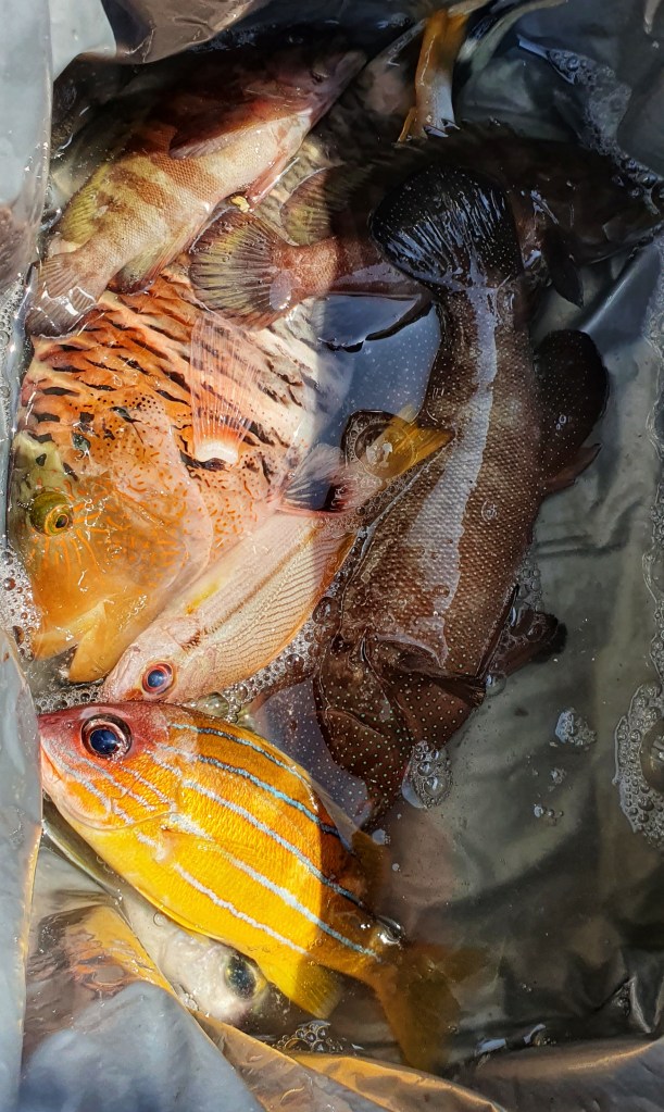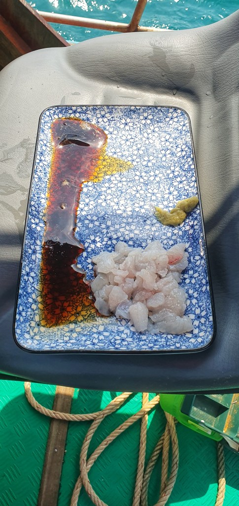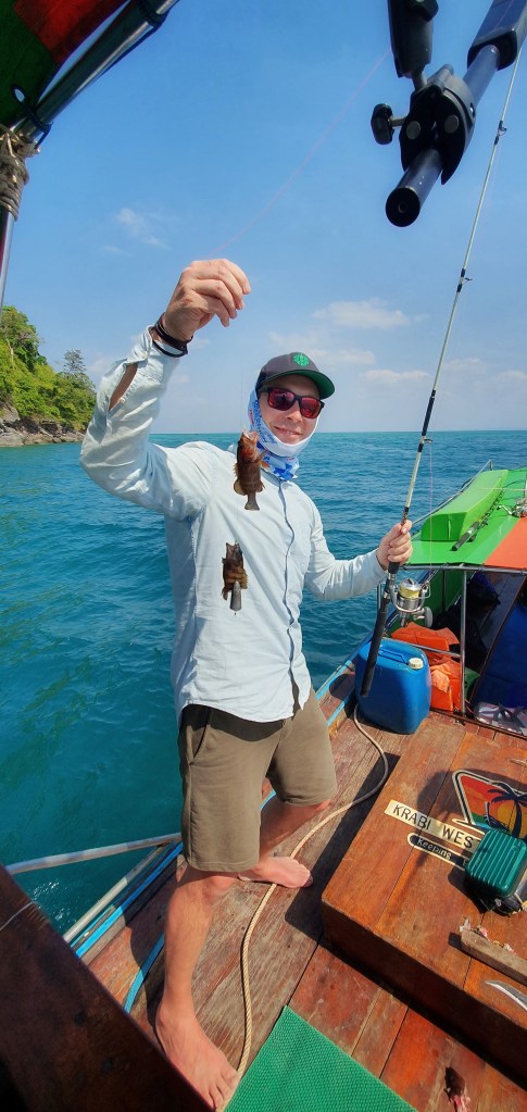 Die Jungs hatten leider keinen großen Fisch gefangen hat. Pascal hatte gestern noch erzählt, dass der Kapitän dort fischt, seit er 4 Jahre alt ist und sie bisher immmer was gefangen haben. Jetzt hatte Marius aber das Pech, dass der Kapitän an diesem Morgen absagen musste. Und derjenige, der das Boot gefahren ist, hat sich zwar größte Mühe gegeben, aber einfach nicht die Erfahrung. An einem Riff haben sie dann aber doch noch ein paar Kleine gefangen…