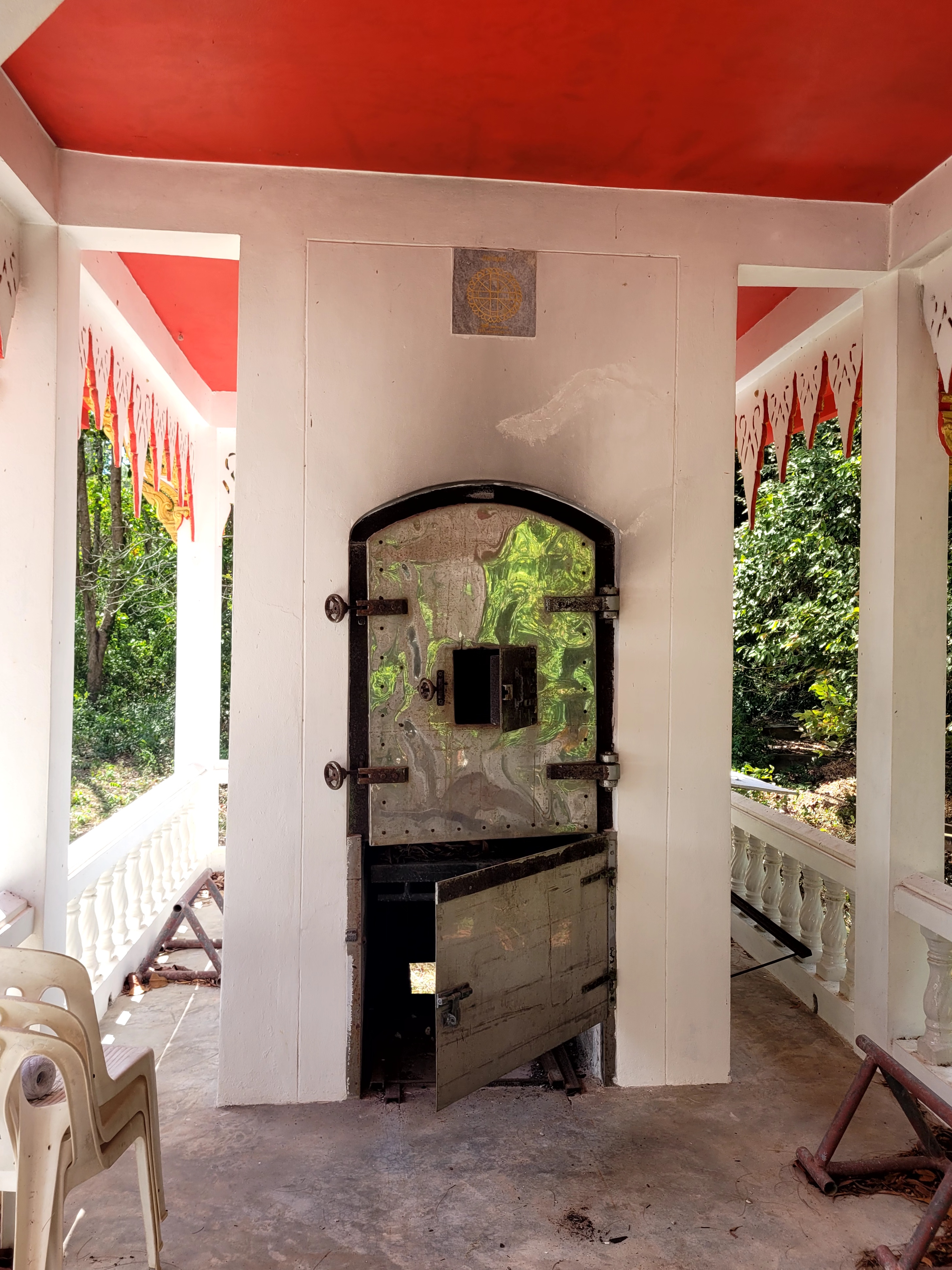 Ein französisches Pärchen hatte so eines schon mal gesehen, sie wussten aber auch nicht, ob da nur Mönche verbrannt werden, oder alle Gläubigen. Auf jeden Fall sah es nicht so aus, als ob es in letzter Zeit benutzt worden wäre…