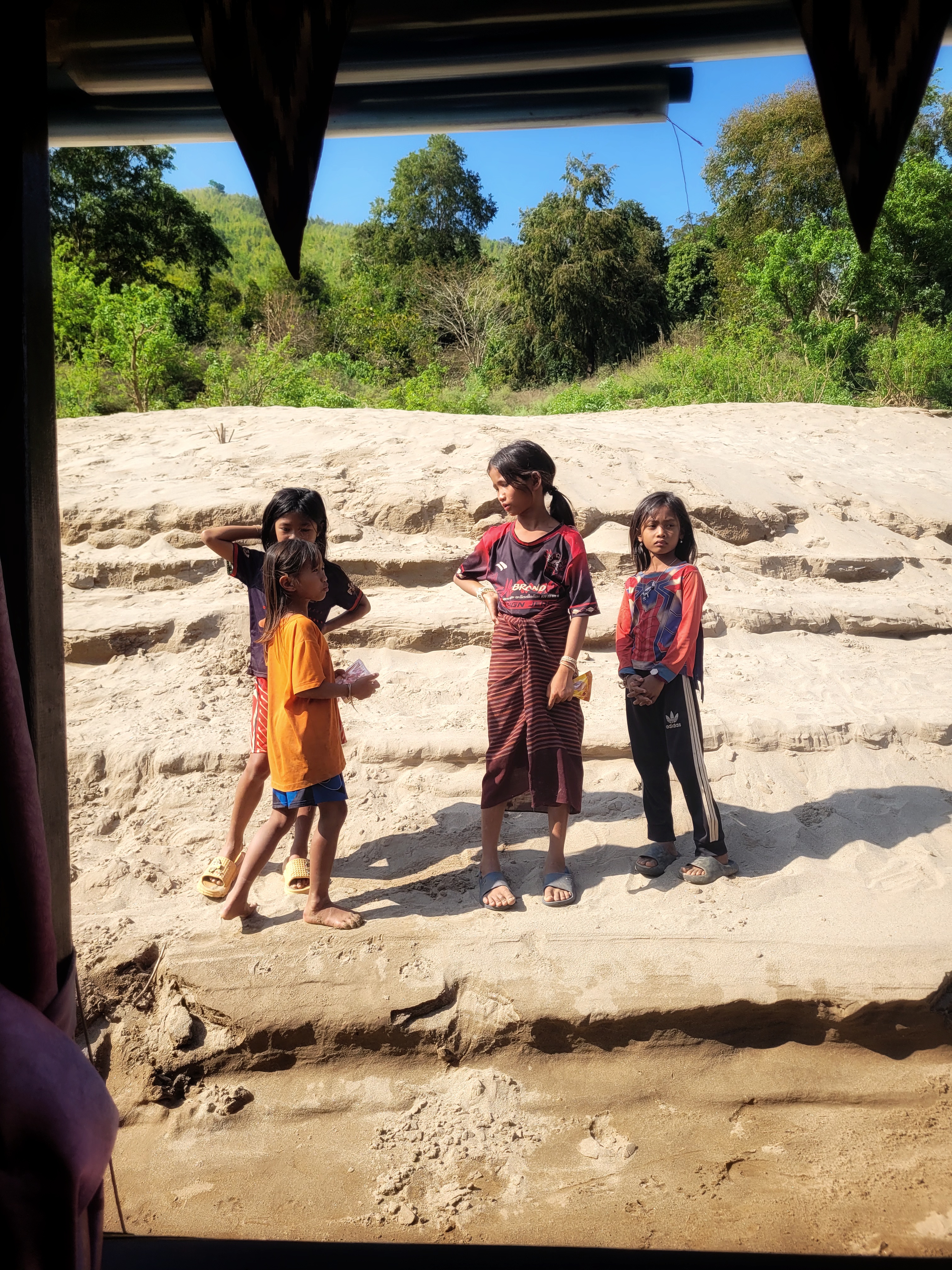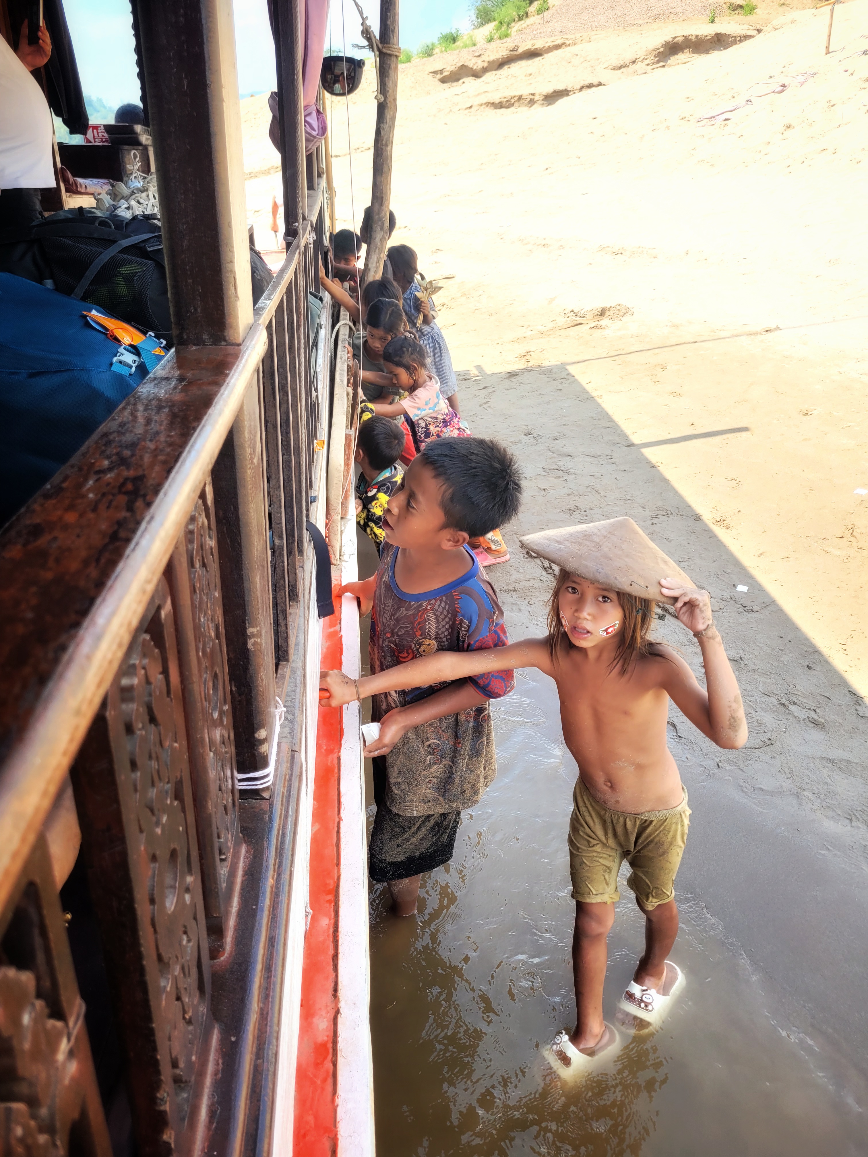 Schon am Boot wurden wir von den ersten Kindern mit Handarbeiten zum Verkaufen begrüßt.