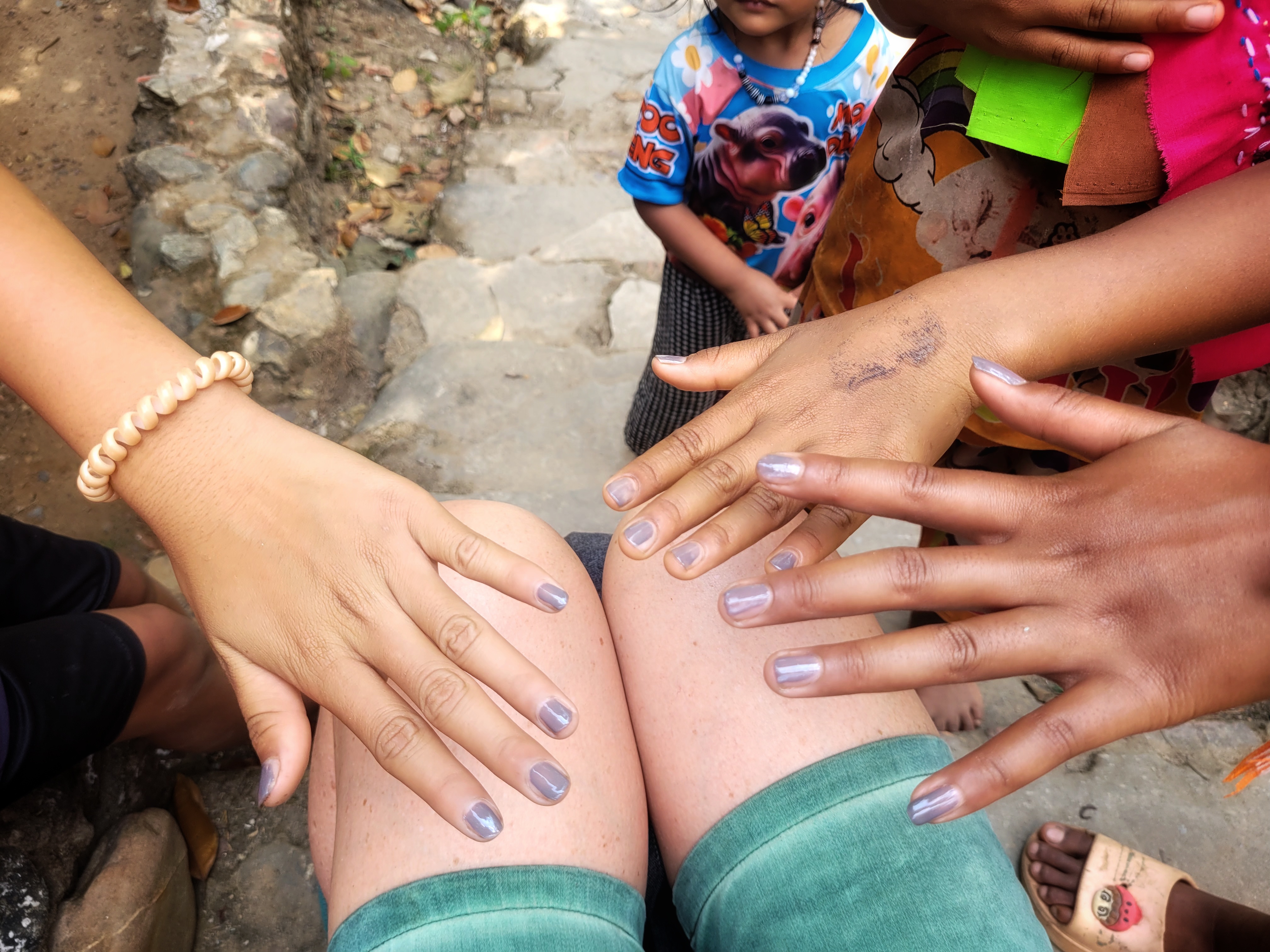 Und die Kinder zum Teil auch sehr neugierig. Da am Tag vorher die Mädchen meine lackierten Zehnägel begutachtet hatten, hatte ich heute meinen Nagellack im Gepäck und musste nicht lange fragen, wer die Nägel lackiert haben wollte…