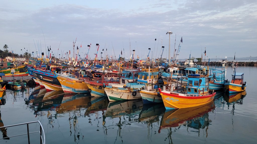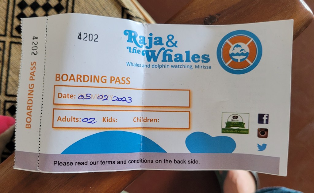 Wir hatten für den nächsten Morgen eine Whale Watching Tour gebucht. Im Reiseführer steht, Blauwale und Menschen haben gemeinsam, dass sie beide die sri lankische Südküste lieben.