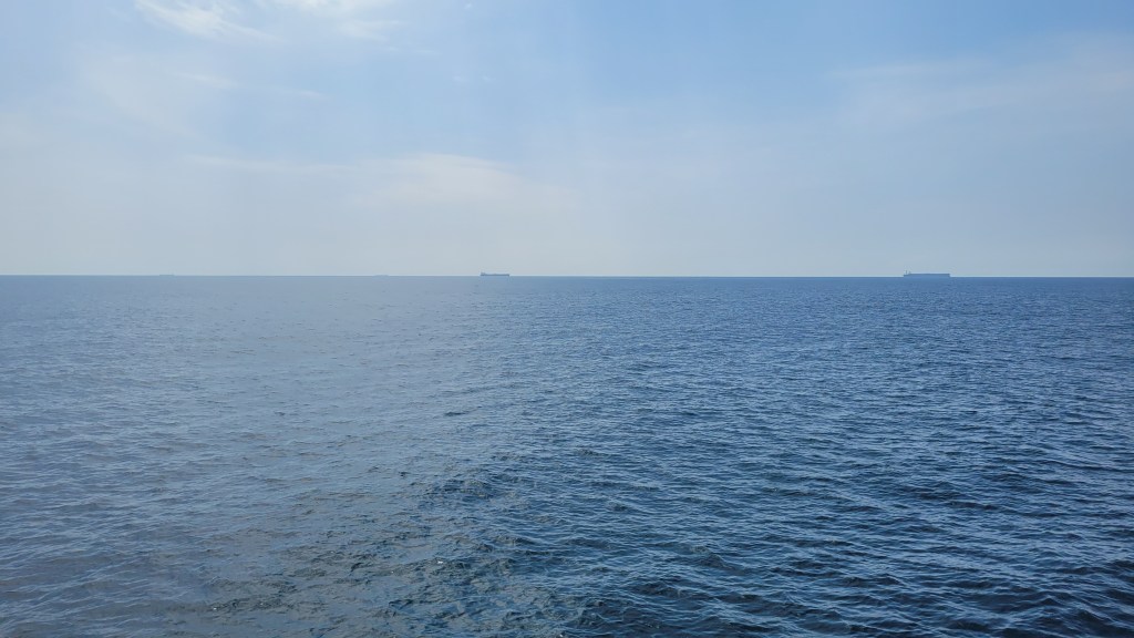 Und es sind so unfassbar viele Schiffe. Ich wollte den Horizont fotografieren. Ich habe keinen Ausschnitt ohne Frachter gefunden.