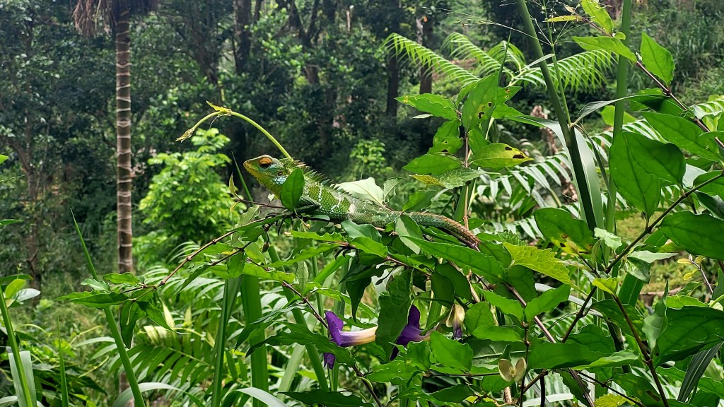 Nachdem wir die ersten 2 Etappen mit dem Bus gefahren sind, somit ganz nah am sri lankischen Leben dran waren, bei dem man sogar im Bus nass wird wenn es regnet, haben wir uns dann für die Taxi Variante entschieden. Wir hatten so Glück mit unseren Fahrern. Der eine ist auch Guide im Urwald und hat immer wieder angehalten um uns mal auf einen Leguan aufmerksam zu machen…
