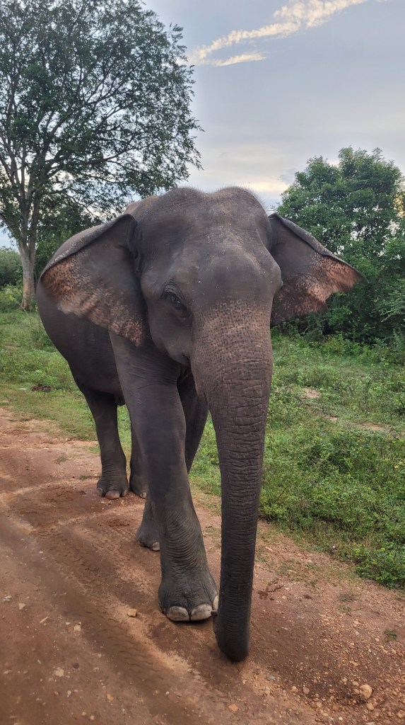 Am nächsten Morgen wurden wir um 5.45 Uhr zu unserer Safari abgeholt. Um 6 waren wir am Eingang und es waren ausser uns auch schon viele andere Jeeps da. Und schon am Eingang kam uns ein Elefanten entgegen der erst mal wieder ein Stück zurück laufen musste, damit wir an ihm vorbei gekommen sind. Der nächste war da etwas sturer.