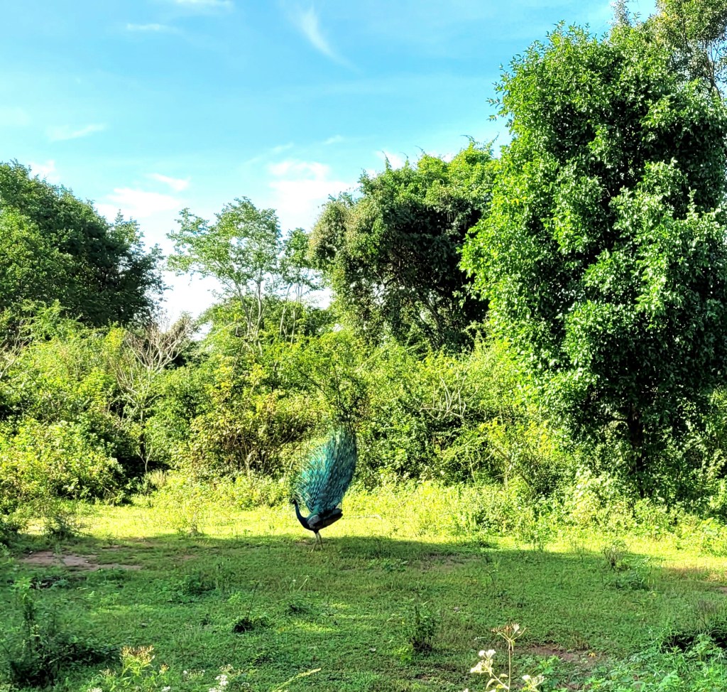 …wunderschön! Aber tatsächlich so verbreitet, dass es sich fast anfühlt wie Schwäne bei uns. Sogar auf der Autobahn gibt es Warnschilder „Vorsicht, Pfaue kreuzen“.
