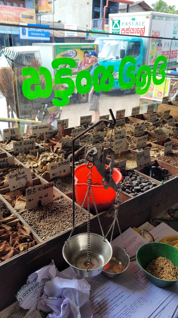 Es gab eine Ayurveda Apotheke. Die war super um tolle Bilder zu machen. Allerdings bezweifle ich, dass in den Kräutern noch viel Wirkstoff ist wenn den ganzen Tag die Sonne drauf knallt und alles offen ist. Ich werde dem Rat der beiden Halb-Sri Lankerinnen folgen, und alles was ich brauche im Supermarkt kaufen. Beste Qualität zum besten Preis tatsächlich.
