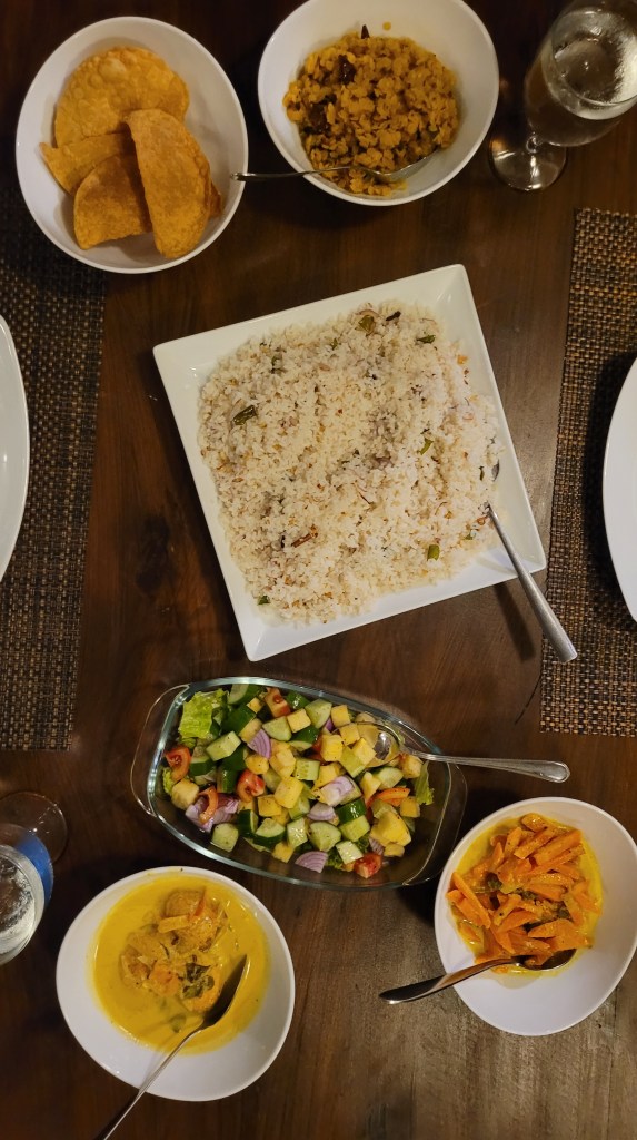 …aber ich habe tatsächlich alles probiert. Hatte Marius im Ohr der mich sonst gerügt hätte. Das meiste war super lecker. Manche Speisen waren okay, nicht schlimm dass es das Gemüse bei uns nicht gibt. Und tatsächlich war nur der salzige Milchreis mit geschmelzten Zwiebeln nicht so meins.