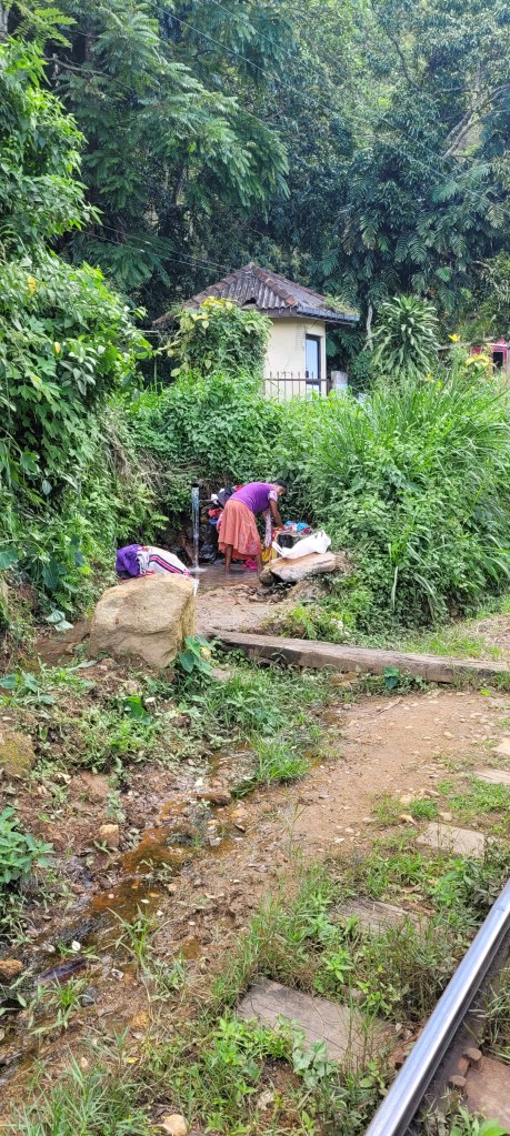 Über die Bahngleise zurück an dieser Frau vorbei, die die Wäsche von Hand wäscht – Hut ab …