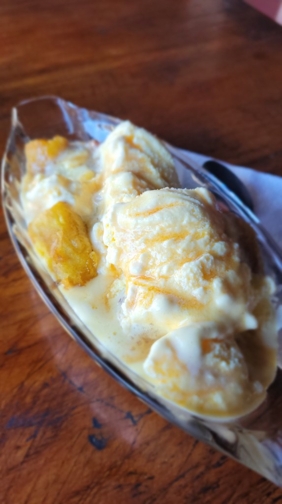 Und zum Nachtisch mein aller erstes Eis😁 mit frittierten Bananen 😇