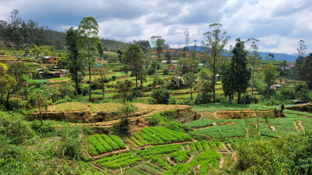 …zum höchstgelegenen Bahnhof Sri Lankas, auf 1898m. Dort ging es dann durch Gemüseanbau geprägte Landschaft…
