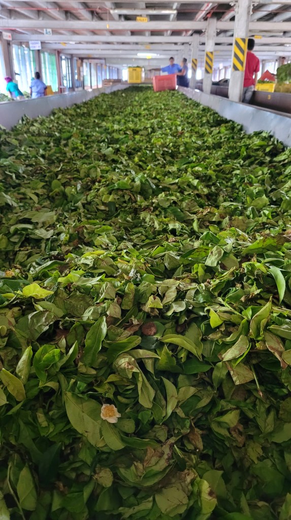 Nach ein paar Stunden der Fermentation kommt der Tee dann wieder auf’s Band und wird dann nochmal mit Holzfeuer und Ventilatoren getrocknet.