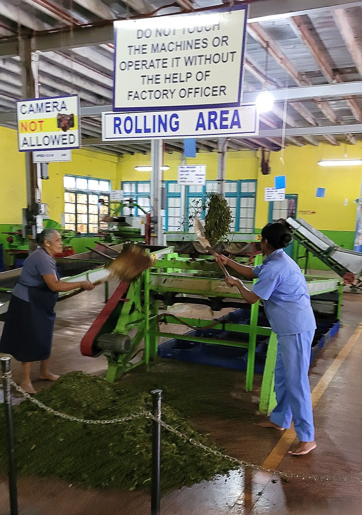 Vorbei an vielen Gemüsehändlern zur Teefabrik. Die Größte in Sri Lanka mit 1000 Angestellten. Davon arbeiten 600 als Teepflücker.