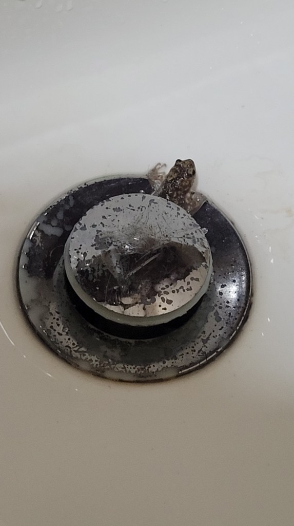 Hat mich dieser kleine Kerl erschreckt beim Zähneputzen! Und eine echt große Spinne war im Bungalow. Mein Vater hat mich gerettet.