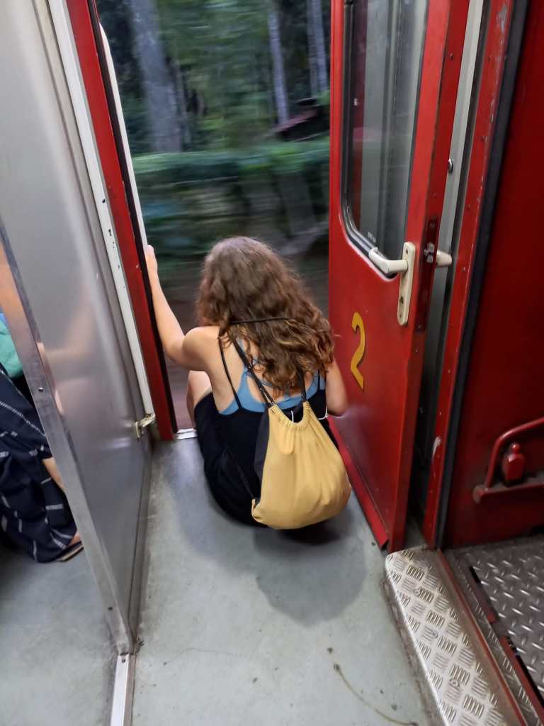 Auch wir wurden neugierig begutachtet und von überall wurde gerufen und gewunken. Um 18 Uhr ging es mit dem Zug dann wieder zurück. Und dann war ich ganz mutig und wurde sogar vom Schaffner dazu ermutigt…
