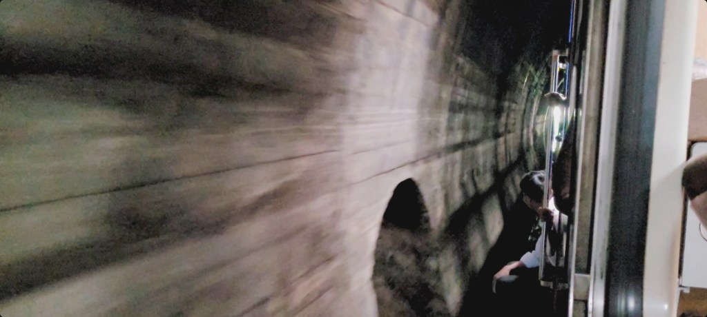 …obwohl es bei diesen Geschwindigkeiten schon möglich wäre. Aber tatsächlich muss man schon am offenen Fenster manchmal Angst haben, einen Ast ins Gesicht zu bekommen. Und die Felsen und Tunnel sind oft nicht mehr als eine Armeslänge entfernt.