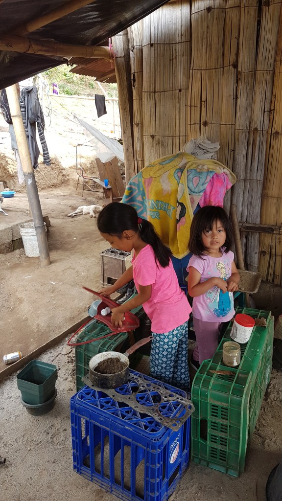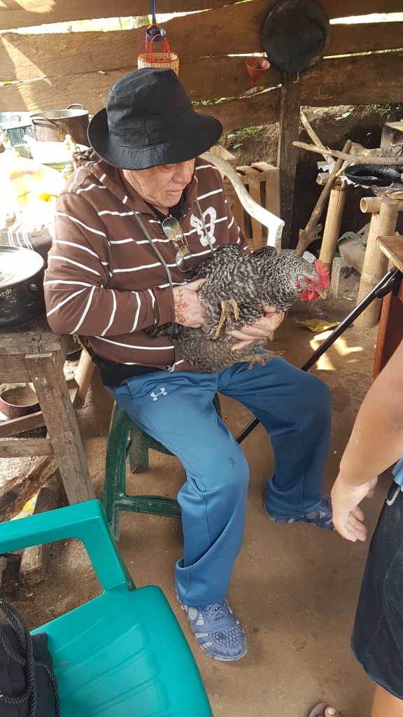 Wir haben Frühstück bekommen. So geht „Einkaufsladen“ spielen auf guatemaltekisch.Diese Henne wurde noch geschlachtet. Die gibt’s an Ostern. Die Toilette hat einen extra Abfluss mit Rohr. Das restliche Abwasser läuft über den Graben ab. Eine wahnsinnig starke, geduldige und liebevolle Frau die ich am Weltfrauentag kennen lernen durfte. Dass sie keinen Strom haben, nimmt sie dankbar an. Sie haben viel Zeit mit den Kindern, da kein Fernseher oder Handy ablenkt. Sie haben schöne Gespräche wenn es dunkel wird und sie genießt es, denn irgendwann sind die Kinder aus dem Haus…