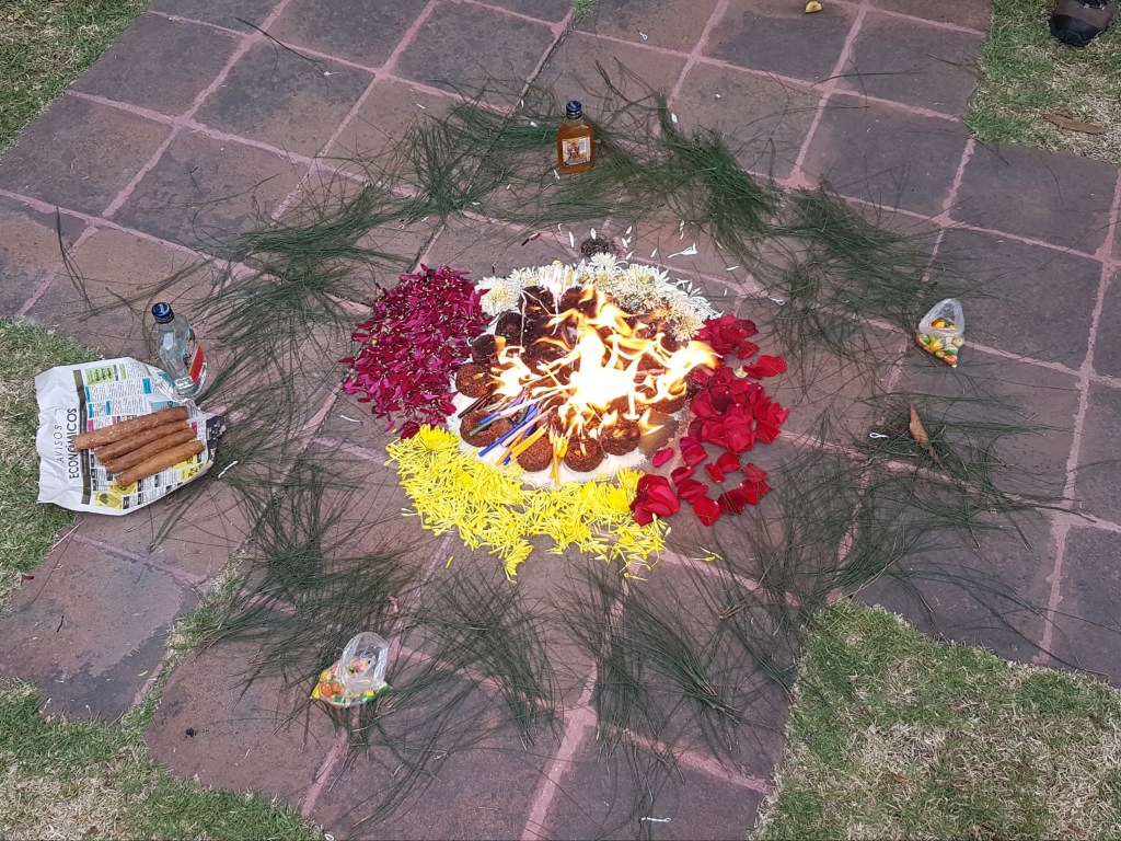 Vor allem Kerzen, Schnaps und Tabak werden verbrannt. Auch Schokolade, Süßigkeiten, Sesam, Zucker. Von allem darf man natürlich auch probieren.