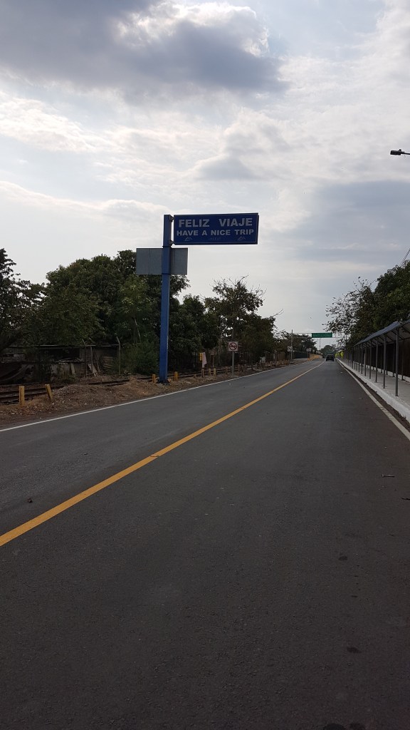 Es war nicht viel los, so konnte ich mich auf einen dauerhaft trockenen Platz retten. Es gab schon sowas wie eine Tür.An der Grenze hier in Tecun Uman gibt es doch tatsächlich noch die armen Fahrradtaxi-Fahrer, die bei 34 Grad Touris mit schweren Rucksäcken über die Grenze strampeln. Allerdings muss man bei denen auch wieder sehr vorsichtig sein was die Preise angeht. Und ein Nein muss man hier auch wieder sehr deutlich formulieren.