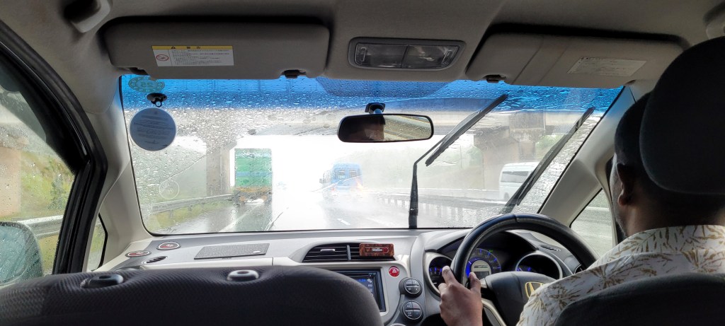 Und es hat an diesem Tag nicht mehr aufgehört zu regnen. Deshalb sind wir bei strömenden Regen trotz Regenschirm und -jacke bis auf die Unterhose nass geworden als wir essen gingen.