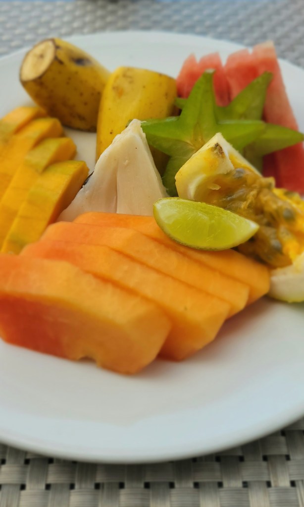 Täglich bekomme ich ca. 2,5h Anwendungen 😍 Und 3 warme Mahlzeiten. Und gehungert habe ich nicht. Es gibt bei jeder Mahlzeit 3 Gänge und da ich immer alles brav auf esse weil es einfach so sensationell schmeckt, wollen mir die Jungs vom Service immer nochmal Nachschub bringen. Und ich halte es ohne Probleme ohne Süßigkeiten aus. Zum Dessert gibt es entweder zuckersüßes Obst….