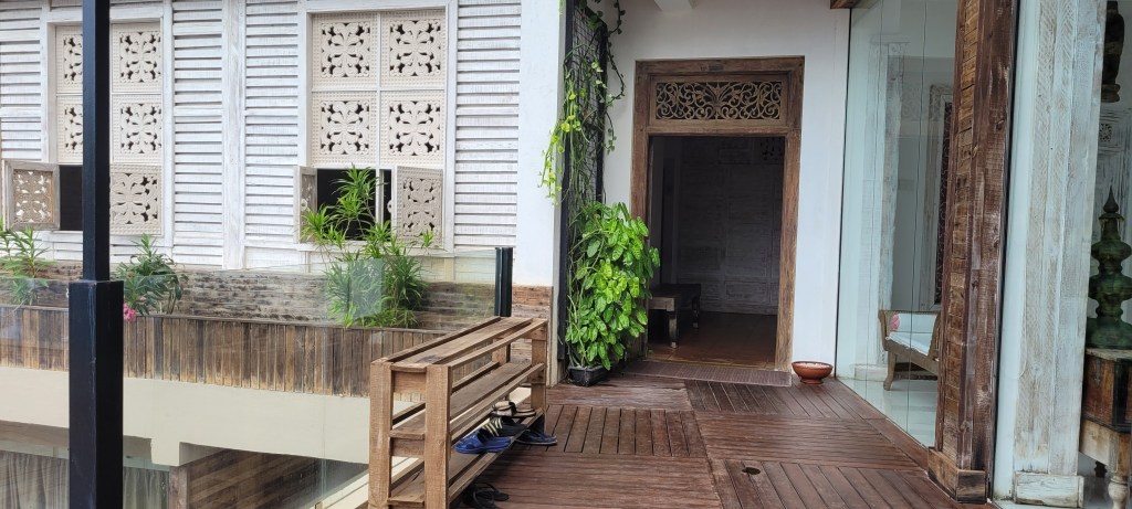 Frühstück gibt es nach dem Yoga bis 9.30 Uhr und da hatte ich dann schon meine Konsultation beim Arzt. Vor den Behandlungsräumen müssen natürlich auch die Schuhe ausgezogen werden.