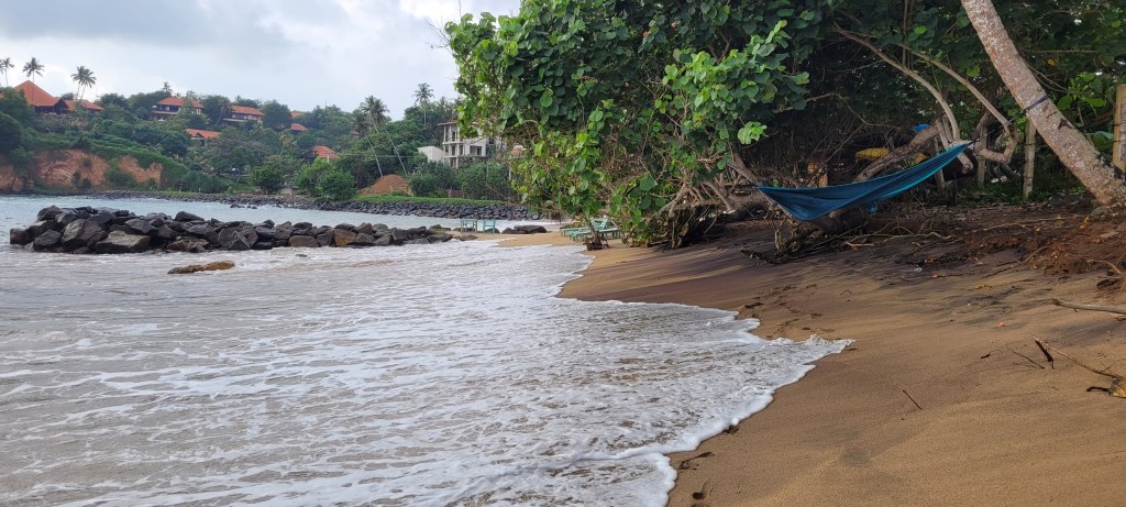 Eigentlich gibt es mehrere Strände in Weligama. Der direkt vor meiner Haustür ist der Jungle Beach, durch eine starke Brandung kann man da ganz schnell im Wasser liegen, darum habe ich gleich mal mein neues Accessoire ausgepackt…