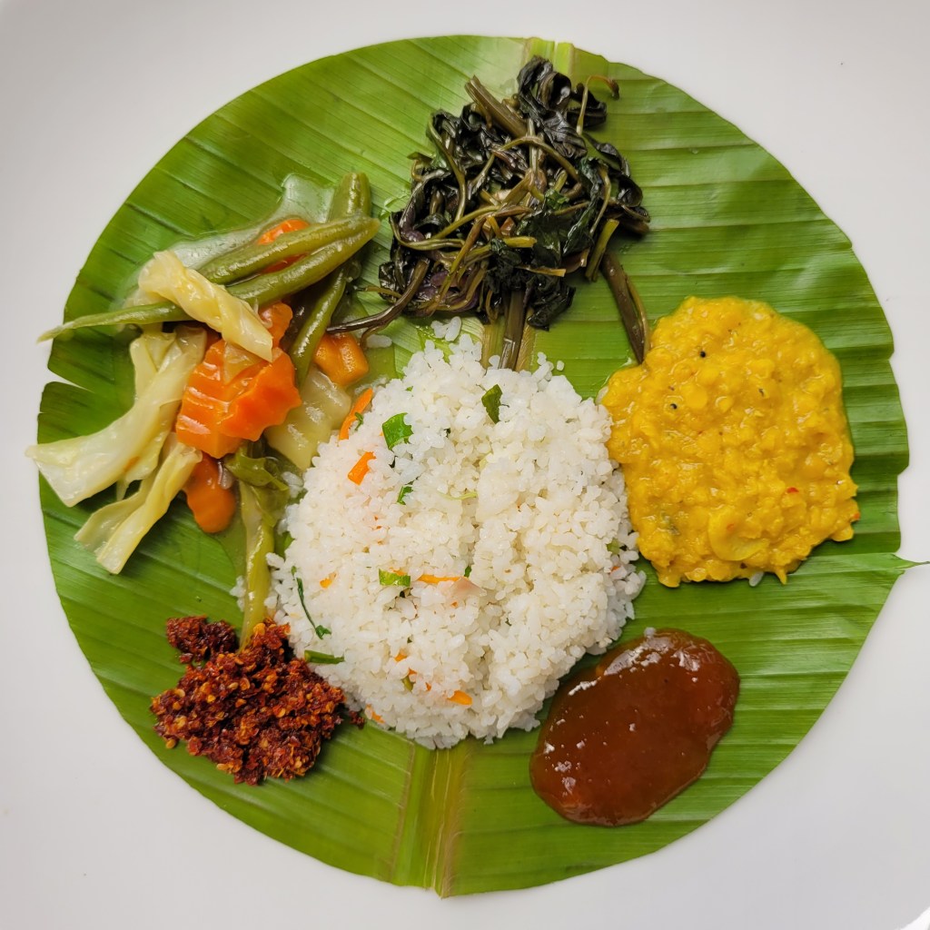 Beim Abendessen gab es viele erste Male. Mir wurde der Stuhl zurecht gerückt, die Stoffserviette auf den Schoß gelegt und ich bekam das erste sri lankische Essen serviert. Eine Geschmacksexplosion!