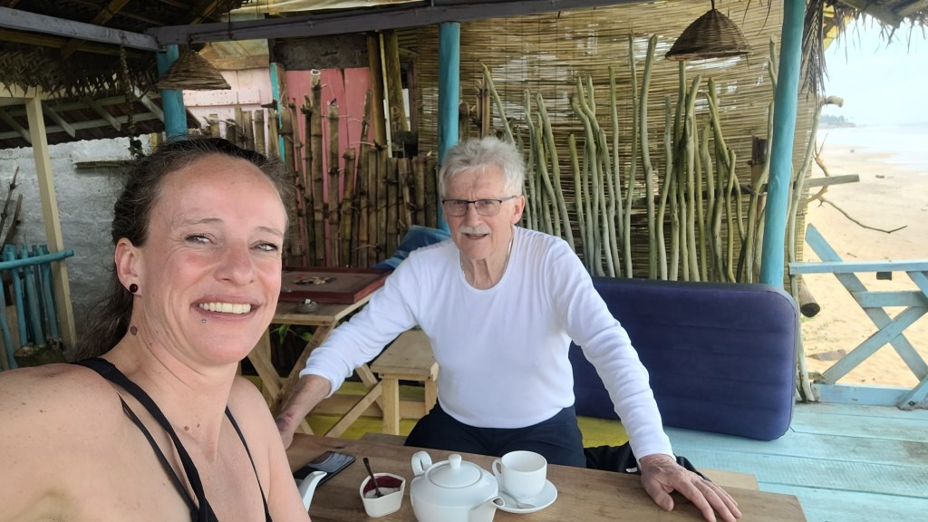Ich habe uns eine sehr einfache Unterkunft direkt am Meer gebucht. Mein Papa saß ziemlich müde von seinem Flug beim Tee trinken. Auch ich bekam zur Begrüßung Tee und dann wurde erst mal erzählt.