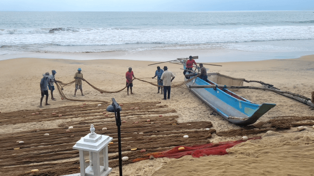 Beim Mittagessen am Strand konnten wir den Fischern bei ihren Vorbereitungen zusehen.