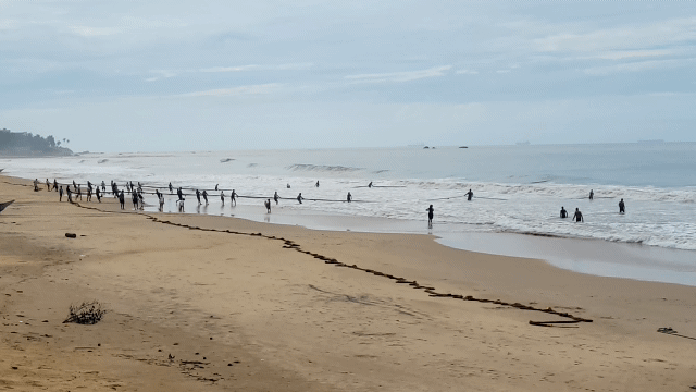 …während wir den Fischern wieder beim Netz einholen zusahen.