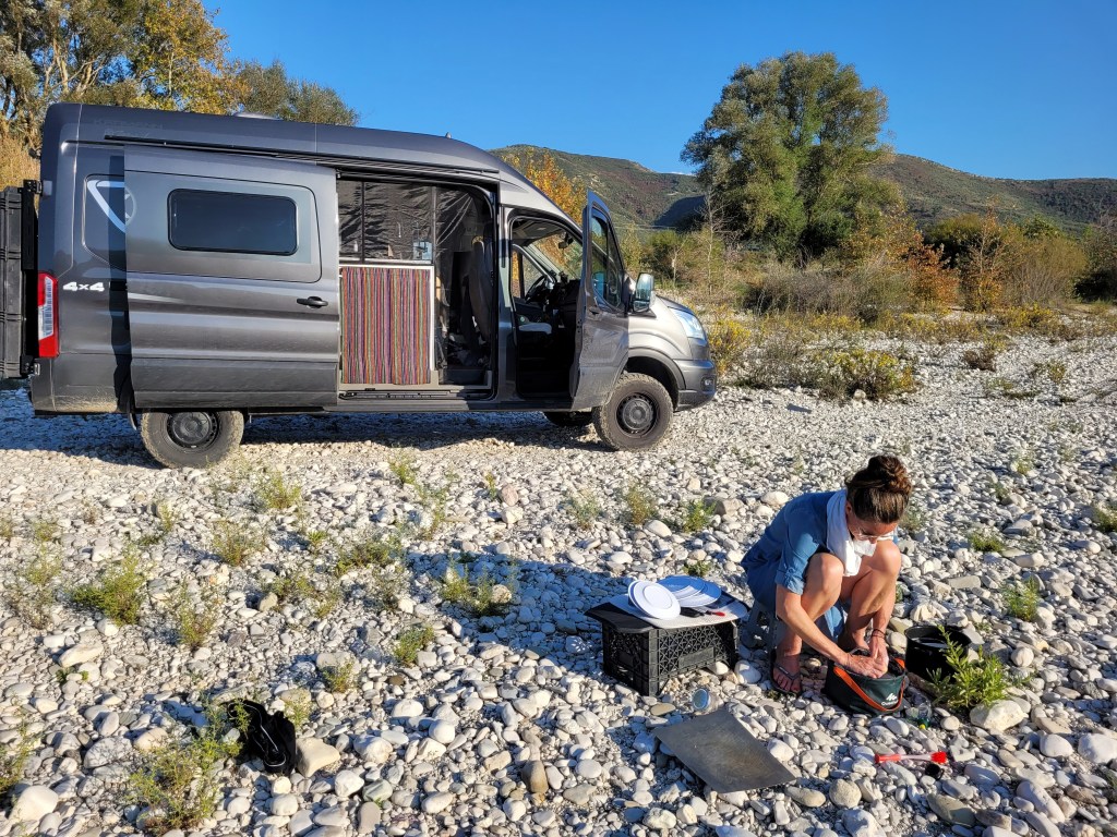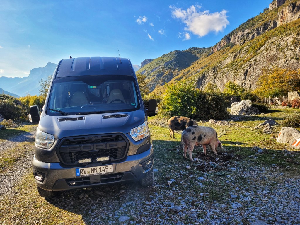 Und dann gab es viel Redebedarf übers Wetter. Es war vor unserer Abreise kein Regen angesagt, immer Sonne und über 20 Grad. So war es ja nun nicht immer. Aber, wir wollen uns gar nicht beschweren, letztendlich, immer besser als angesagt. Um 18 Uhr ist es hier in Albanien schon dunkel, so dass wir nur an den wenigen Abenden mit Lagerfeuer, länger draußen gesessen sind. Wenn wir nächsten Herbst länger losziehen wollen, bis in den Dezember rein, wo können wir dann mit Fordinand hin? Den Sommer in Europa bis in den Dezember rein zu verlängern, das haben wir nun realisiert, wird nicht möglich sein. Um das Camper Leben zu führen, wie wir uns das vorstellen, reichen ja auch die 20 Grad Plus/Minus. Die Länder, wo Wild Campen erlaubt ist, sind um diese Jahreszeit aber auch schon eher herbstlich. Spanien, Portugal, Marokko ist eine Möglichkeit. Griechenland, Türkei und Georgien… Wir werden das nun beobachten… Aber der Balkan, Rumänien, Bulgarien wird schwierig.