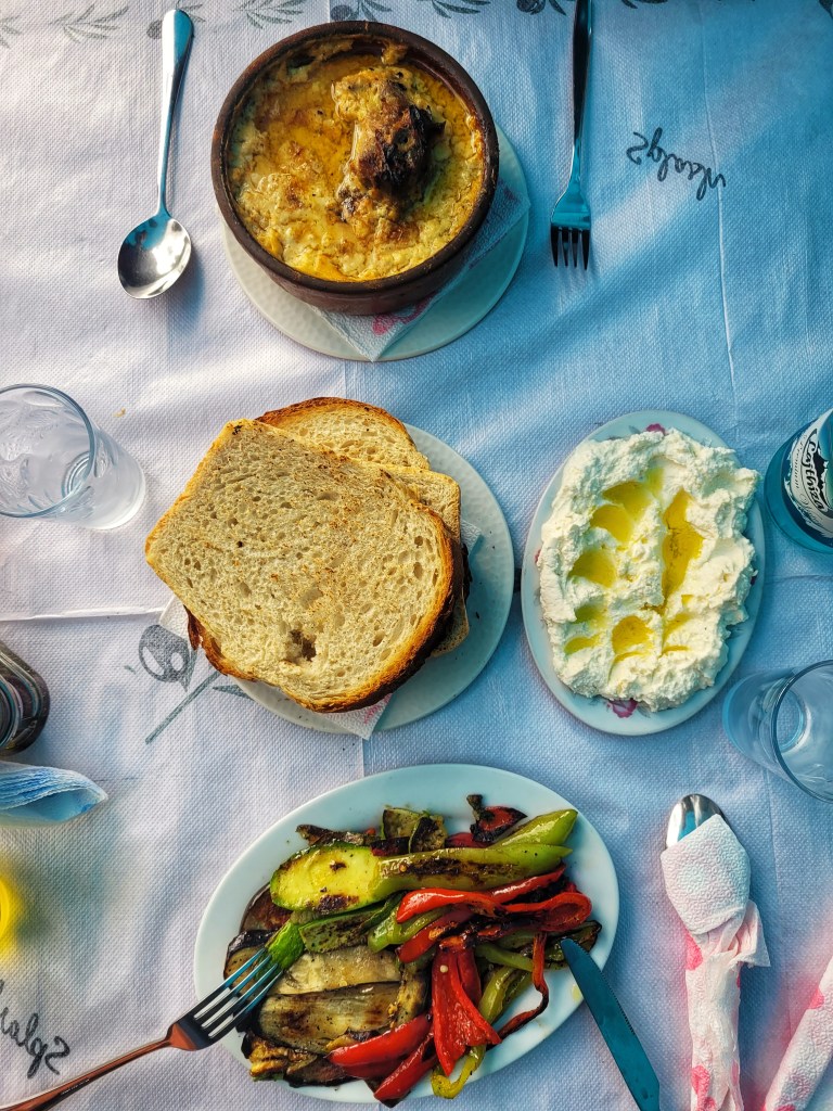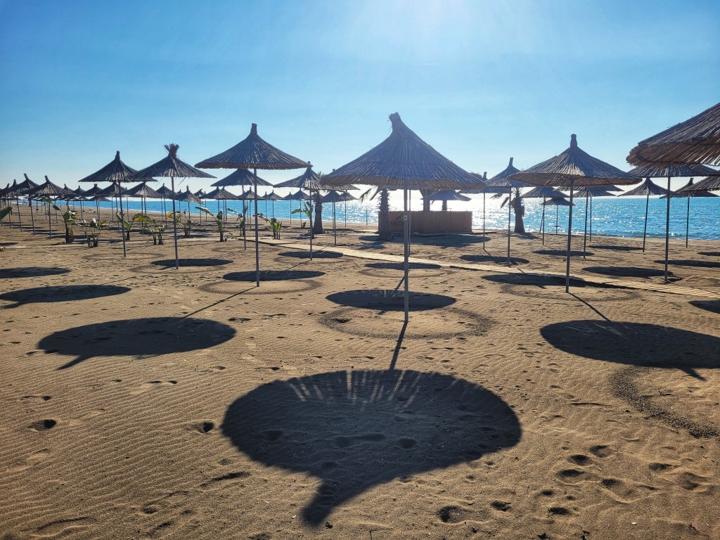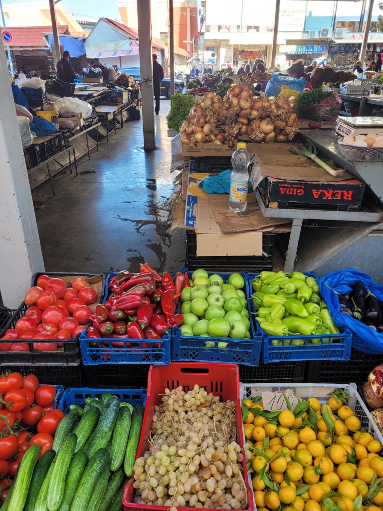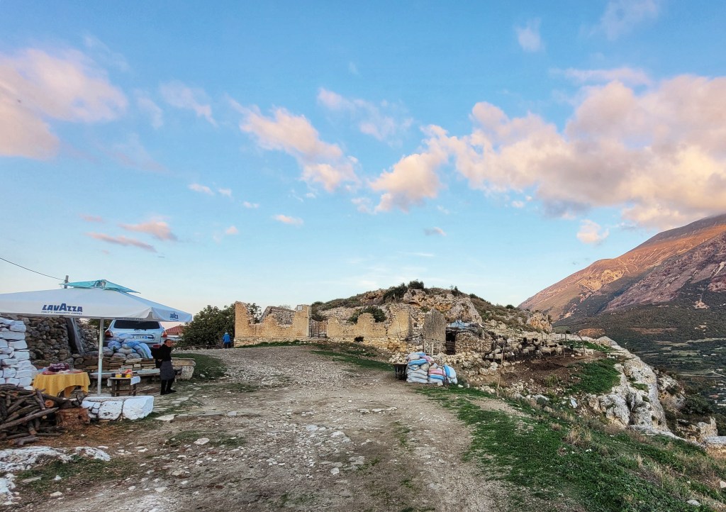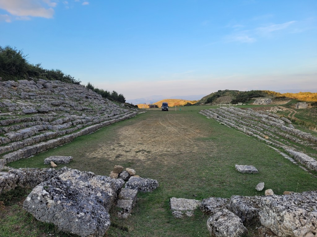Dann sind wir noch zum Einkaufen, um die restlichen Tage gut verbringen zu können und haben uns bei Ksamil ein Plätzchen für die Nacht gesucht. Gar nicht so einfach. Es ist so mega touristisch (Marius fühlte sich an Mallorca erinnert), und jeder Fleck am Meer ist Privatgrundstück. Der 3. Anlauf hat dann funktioniert. Obwohl die Anfahrt nicht ganz einfach war, da die Olivenbaum-Allee doch sehr niedrig für unseren 3 m Bus war…