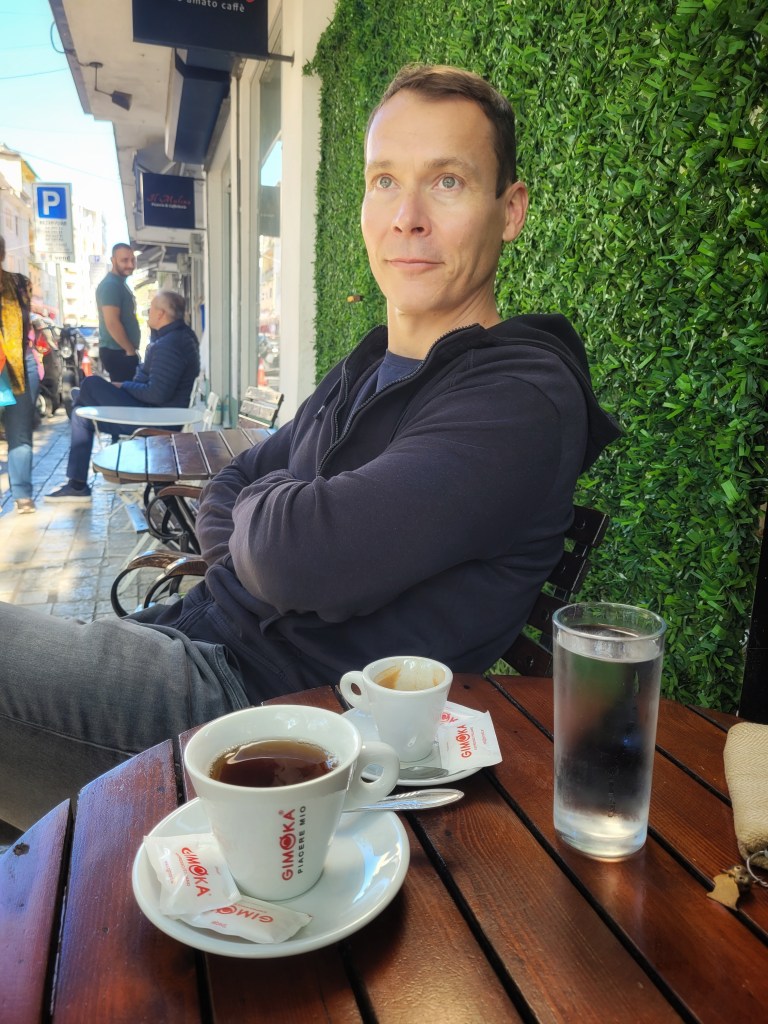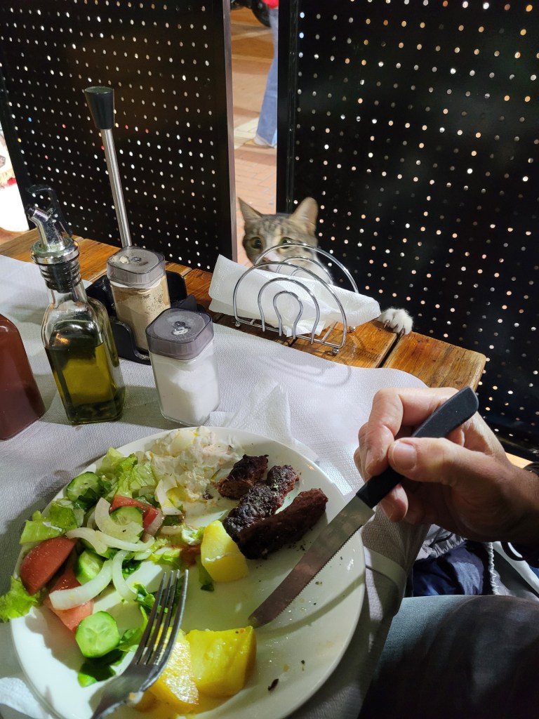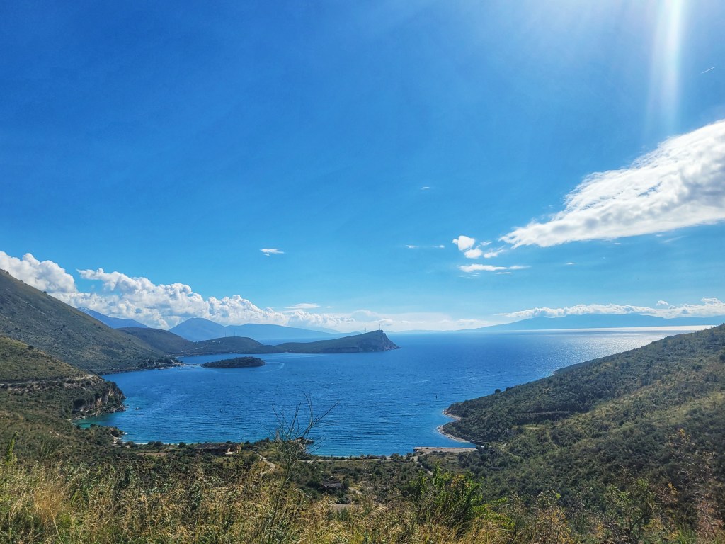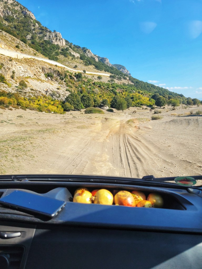 … die Abzweigung verpasst. Also Planänderung, Mittagessen in Saranda, da ich ein Fischrestaurant gefunden habe, wo hauptsächlich Einheimische Essen gehen. Es war super lecker, es gab auch nicht jeden Fisch auf der Karte, sondern das, was die Fischer gefangen hatten. Wir gönnten uns als Dessert Shëndetlie (Walnuss-Honig-Kuchen), DER albanische Nachtisch. Das gab es dann vom Haus geschenkt 🙌