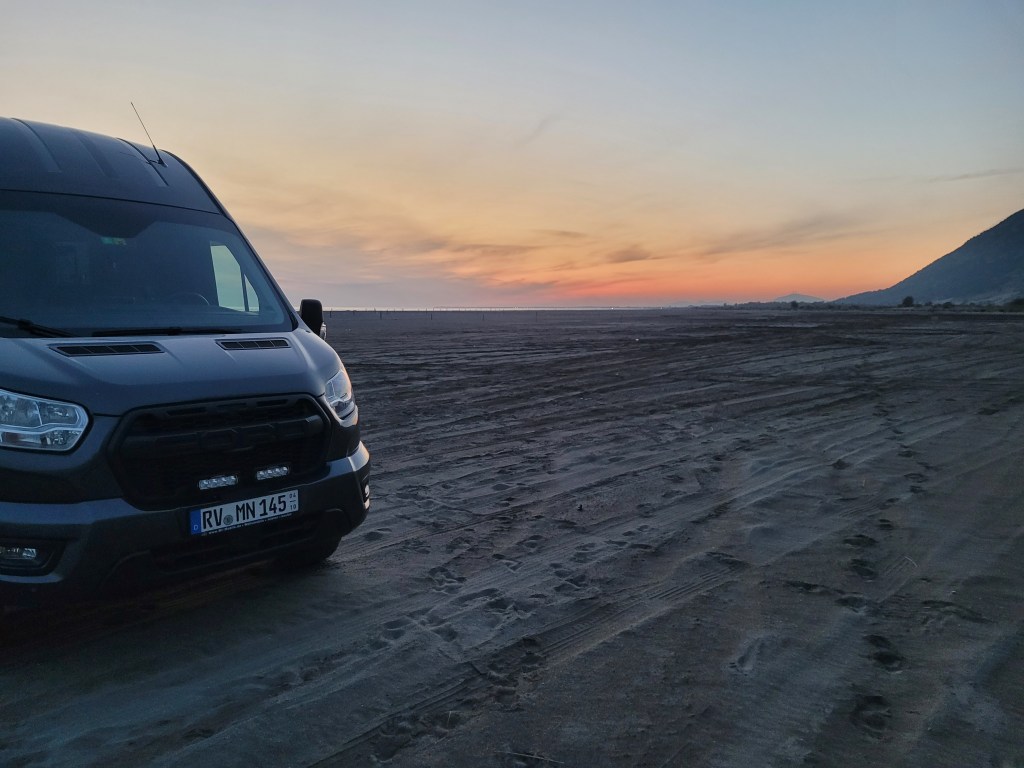 Mit ein paar Kratzern mehr haben wir dann aber unseren Platz am Meer gefunden. Und unser Holz aus Montenegro kam hier dann noch zum Einsatz für ein letztes Lagerfeuer, nachdem der Himmel aufgehört hat zu brennen…